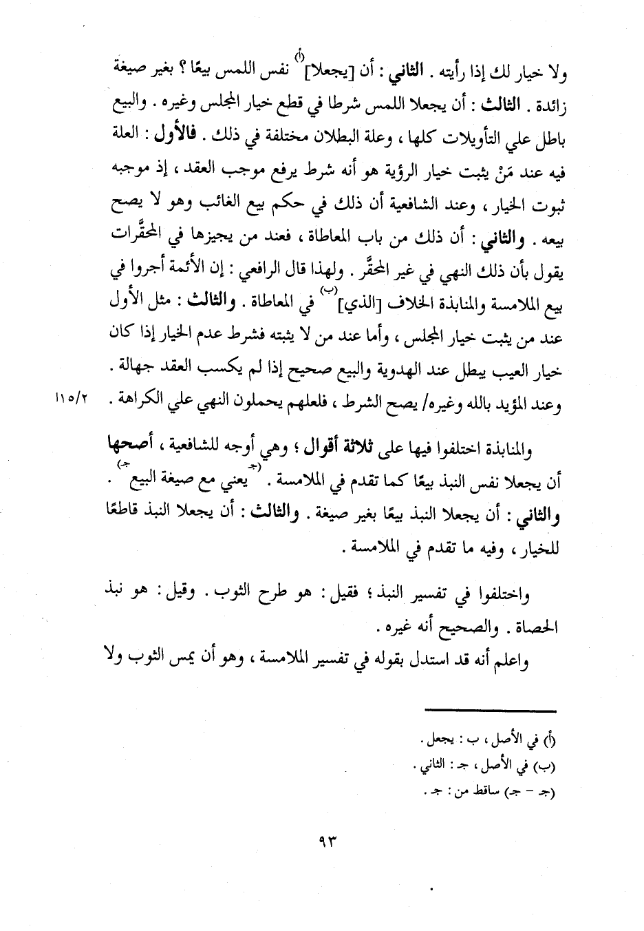 والمنابذة اختلفوا فيها على ثلاثة أقوال؛ وهي أوجه للشافعية، أصحها أن يجعلا نفس النبذ بيعًا كما تقدم في الملامسة. (جـ يعني مع صيغة البيع جـ).