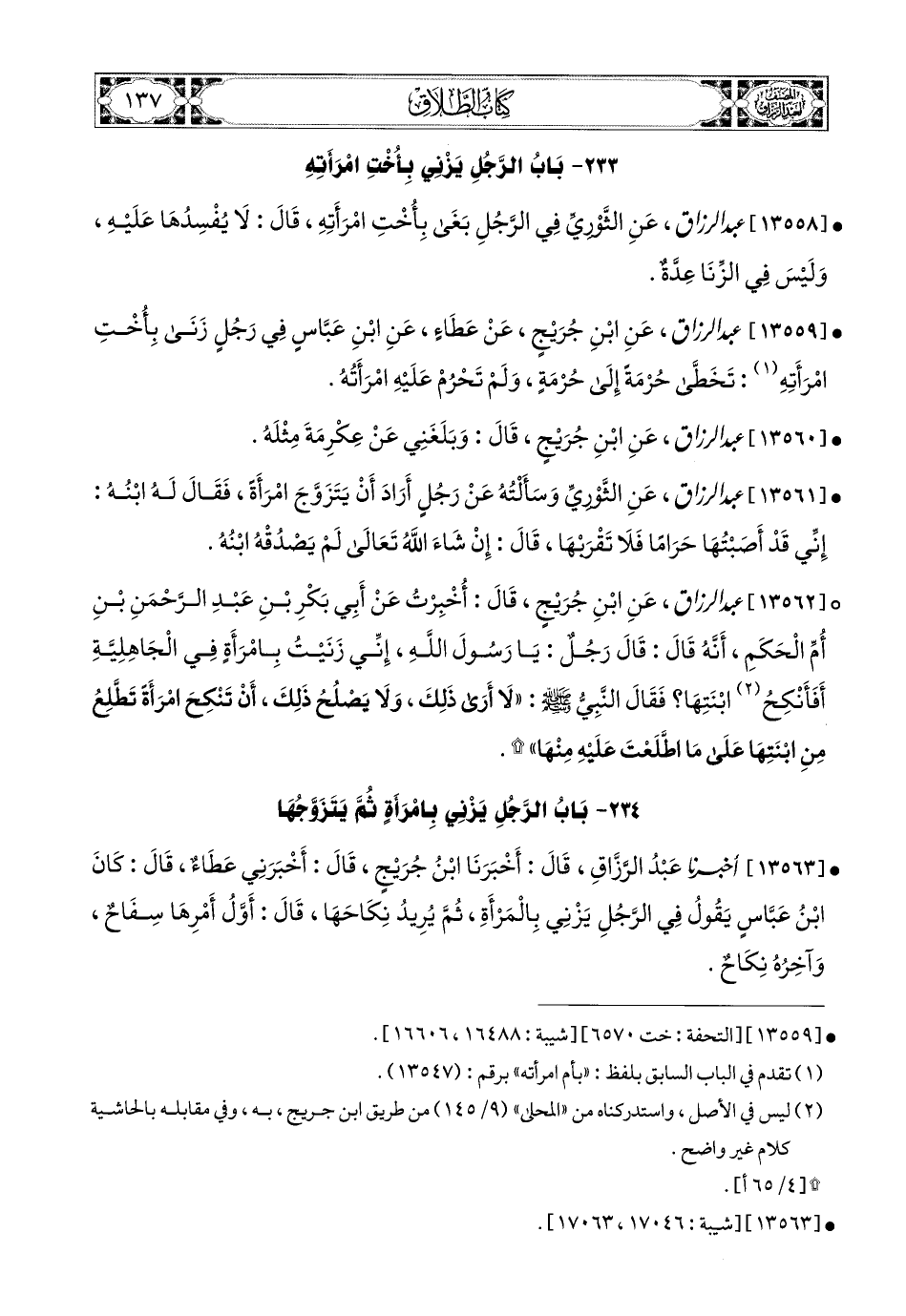 13559- عبد الرزاق، عَنِ ابْنِ جُرَيْجٍ، عَنْ عَطَاءٍ، عَنِ ابْنِ عَبَّاسٍ؛ فِي رَجُلٍ زَنَى بِأُخْتِ امْرَأَتِهِ: تَخَطَّى حُرْمَةً إِلَى حُرْمَةٍ، وَلَمْ تَحْرُمْ عَلَيْهِ امْرَأَتُهُ.