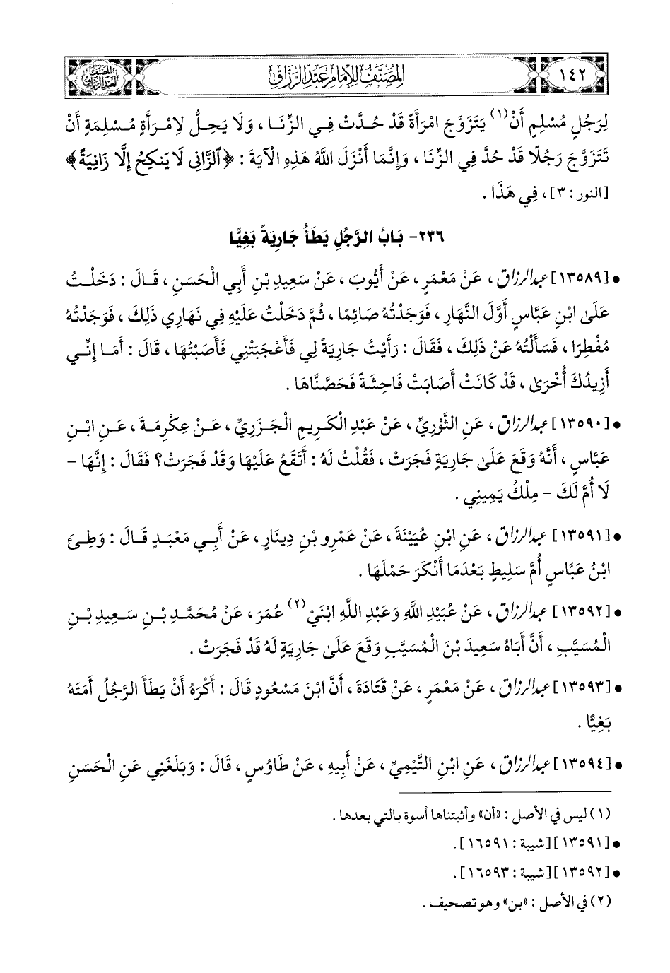 13592- عبد الرزاق، عَن عُبَيْدِ اللهِ، وَعَبْدِ اللهِ، ابْنَيْ عُمَرَ، عَن مُحَمَّدِ بْنِ سَعيدِ بْنِ المُسَيَّبِ، أَنَّ أَبَاهُ سَعيدَ بن المُسَيَّبِ وَقَعَ عَلَى جَارِيَةٍ لَهُ قَدْ فَجَرَتْ.
