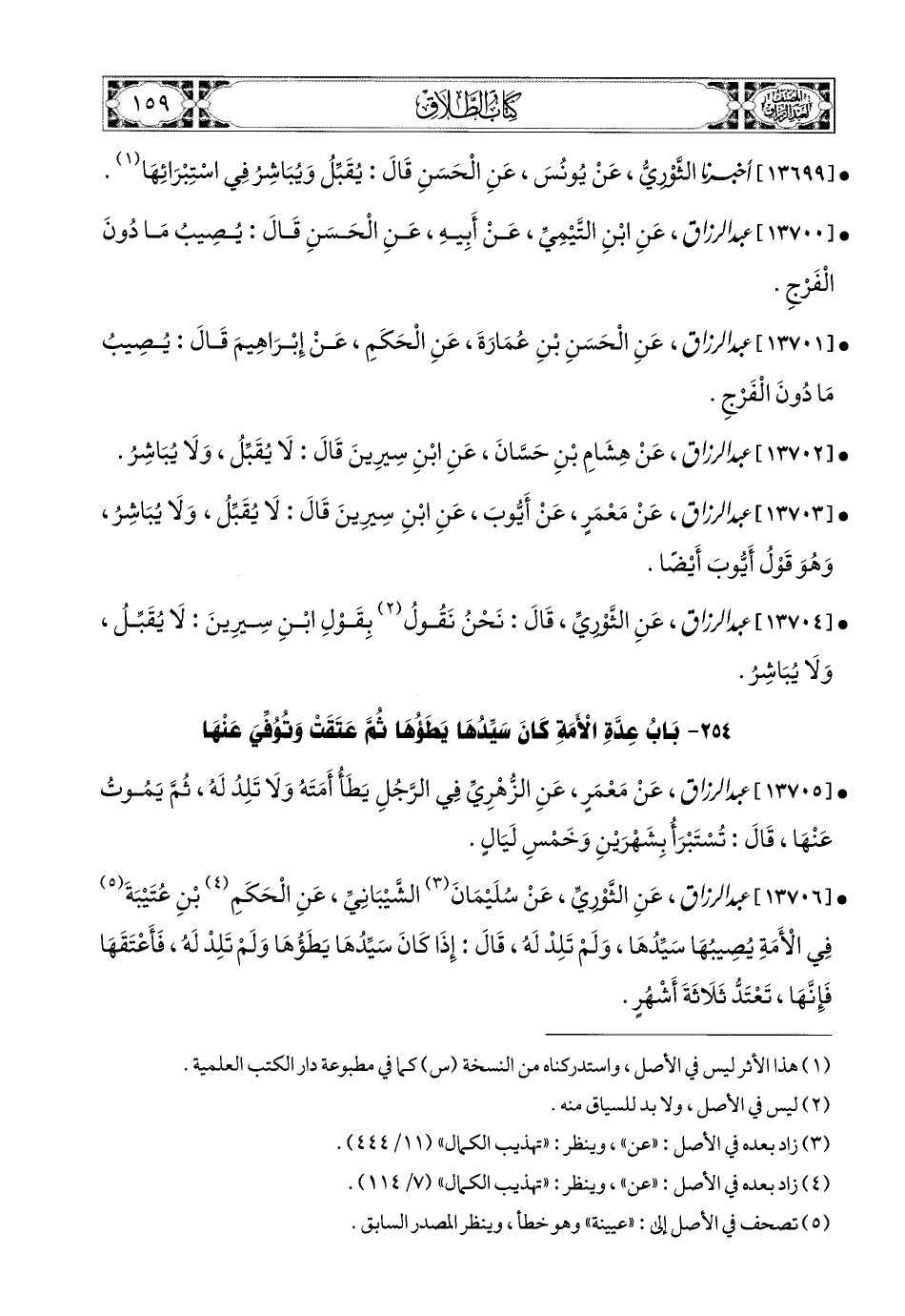 13699- أَخْبَرَنَا الثَّورِيُّ، عَن يُونُسَ، عَنِ الْحَسَنِ، قَالَ: يُقَبِّلُ وَيُبَاشَرُ فِي اسْتَبْرَائِهَا (1).