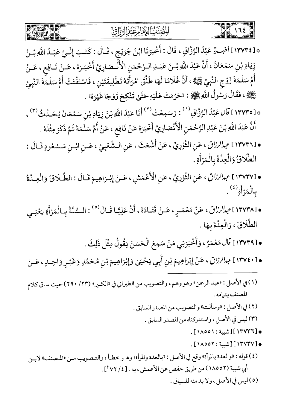 13735- قال عبد الرزاق، وَسَمِعْتُ (1) أَنَا عَبدَ اللهِ بن زِيَادِ بْنِ سَمْعَانَ [يُحَدِّثُ] (2)، أَنَّ عَبدَ اللهِ بن عَبدِ الرَّحْمَنِ الأَنْصَارِيَّ أَخْبَرَهُ، عَن نَافِعٍ، عَن أُمِّ سَلَمَةَ، ثُمَّ ذَكَرَ مِثْلَهُ.