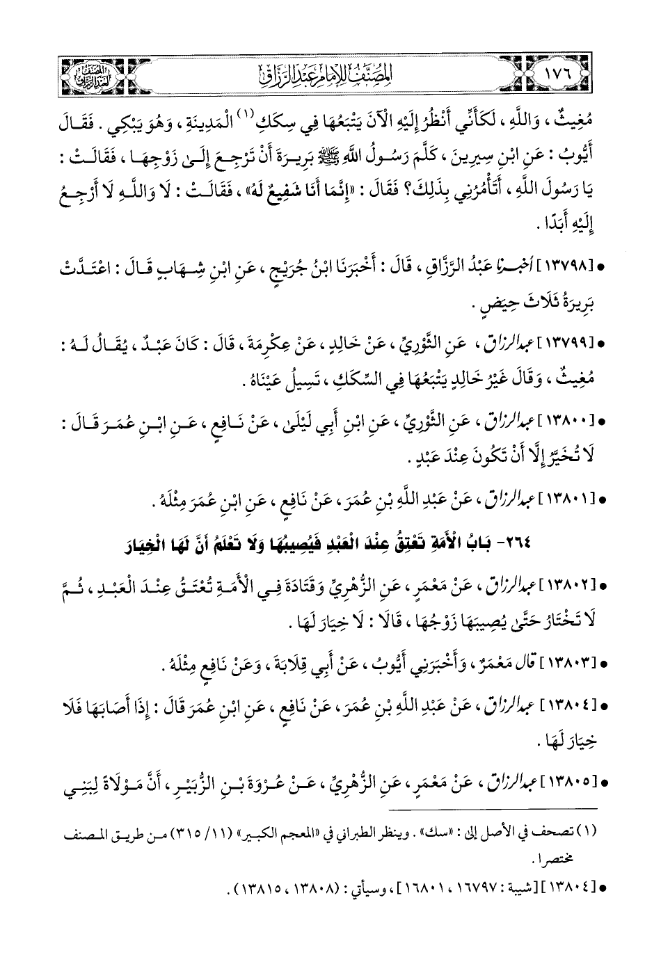 13798- أخبرنا عبد الرزاق، قَالَ: أَخْبَرَنَا ابْنُ جُرَيْجٍ، عَنِ ابْنِ شِهَابٍ قَالَ: اعْتَدَّتْ بَرِيرَةُ ثَلاَثَ حِيَضٍ.