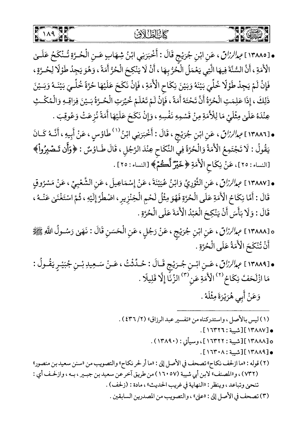 13889- عبد الرزاق، عَنِ ابْنِ جُرَيْجٍ، قَالَ: حُدِّثْتُ عَن سَعيدِ بْنِ جُبَيرٍ يَقُولُ: مَا ازْلَحَفَّ نِكَاحُ الأَمَةِ عَنِ الزِّنَا إِلاَّ قَلِيلاً.