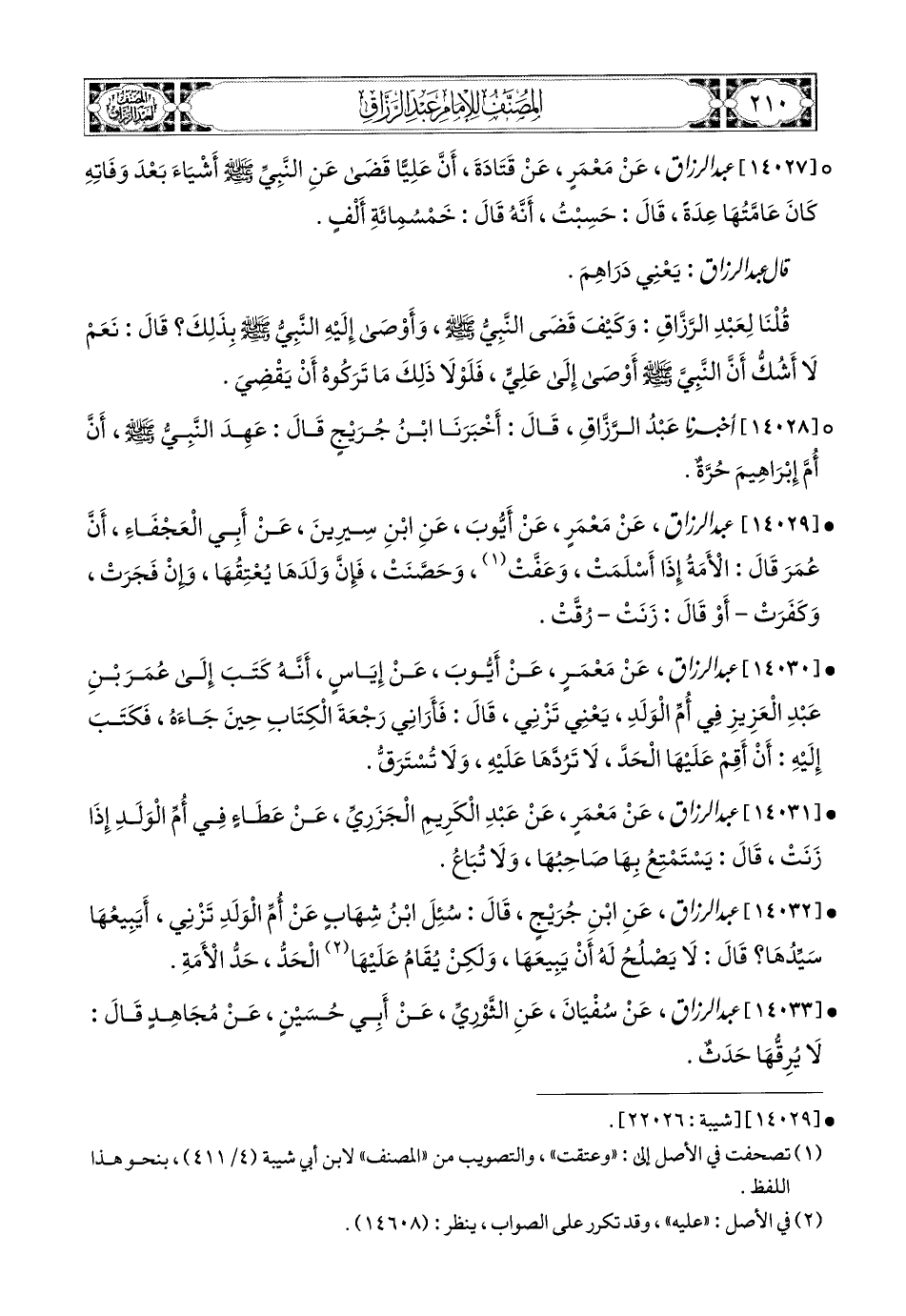 14028- أخبرنا عبد الرزاق، قَالَ: أَخْبَرَنَا ابْنُ جُرَيْجٍ، قَالَ: عَهِدَ النَّبِيُّ صَلَّى اللّهُ عَلَيْهِ وَسَلَّمَ، أَنَّ أُمَّ إِبرَاهِيمَ حُرَّةٌ.
