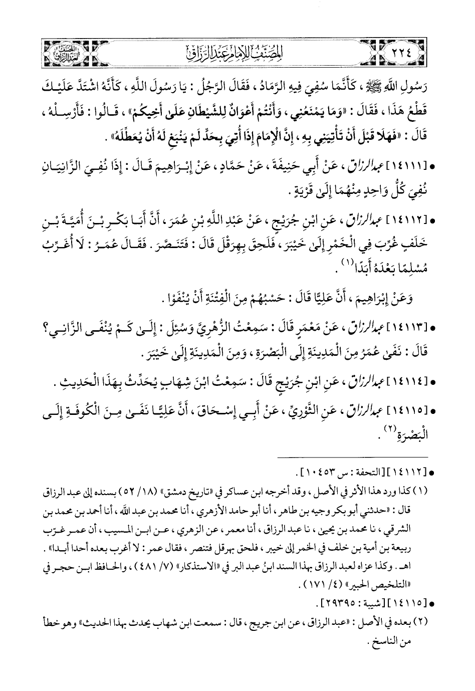 14115- عبد الرزاق، عَنِ الثَّورِيِّ، عَنْ أَبِي إِسْحَاقَ، أَنَّ عَلِيًّا نَفَى مِنَ الْكُوفَةِ إِلَى الْبَصْرَةِ.