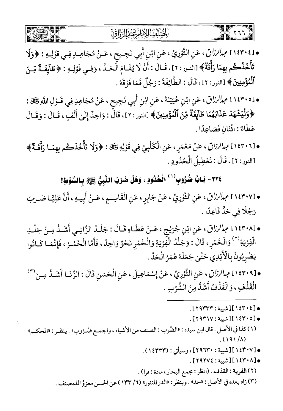 14304- عبد الرزاق، عَنِ الثَّورِيِّ، عَنِ ابْنِ أَبِي نَجِيحٍ، عَن مُجاهِدٍ، فِي قَوْلِهِ: {وَلاَ تَأْخُذْكُمْ بِهِمَا رَأْفَةٌ}، قَالَ: أَنْ لاَ يُقَامَ الْحَدُّ. وَفِي قَوْلِهِ: {طَائِفَةٌ مِنَ المُؤْمِنِينَ}، قَالَ: الطَّائِفَةُ: رَجُلٌ فَمَا فَوْقَهُ.