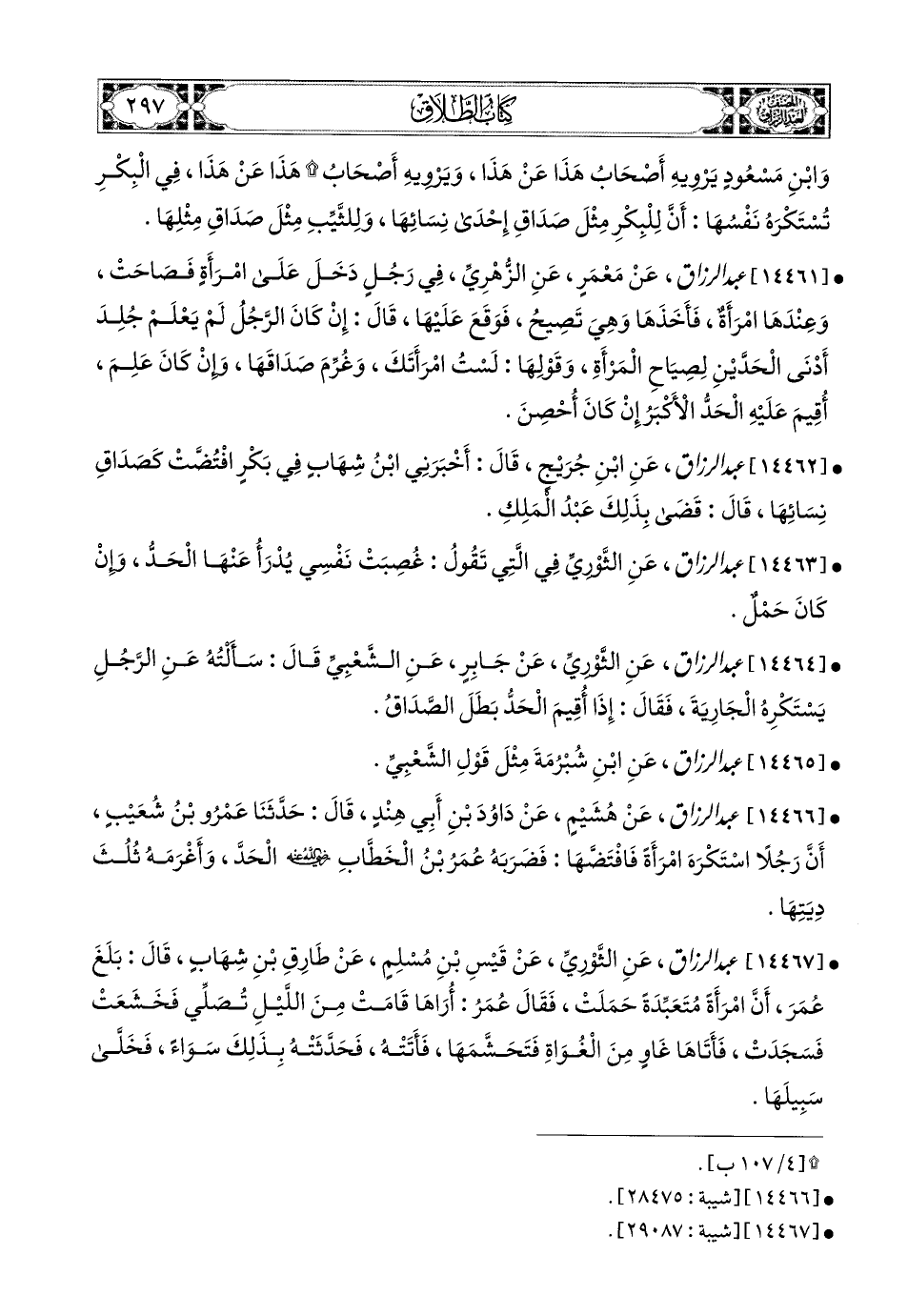 14464 - عبد الرزاق، عَنِ الثَّورِيِّ، عَن جَابِرٍ، عَنِ الشَّعْبِيِّ، قَالَ: سَأَلْتُهُ عَنِ الرَّجُلِ يَسْتَكْرِهُ الْجَارِيَةَ، فَقَالَ: إِذَا أُقِيمَ [عليه] (1) الْحَدُّ بَطَلَ الصَّدَاقُ.
