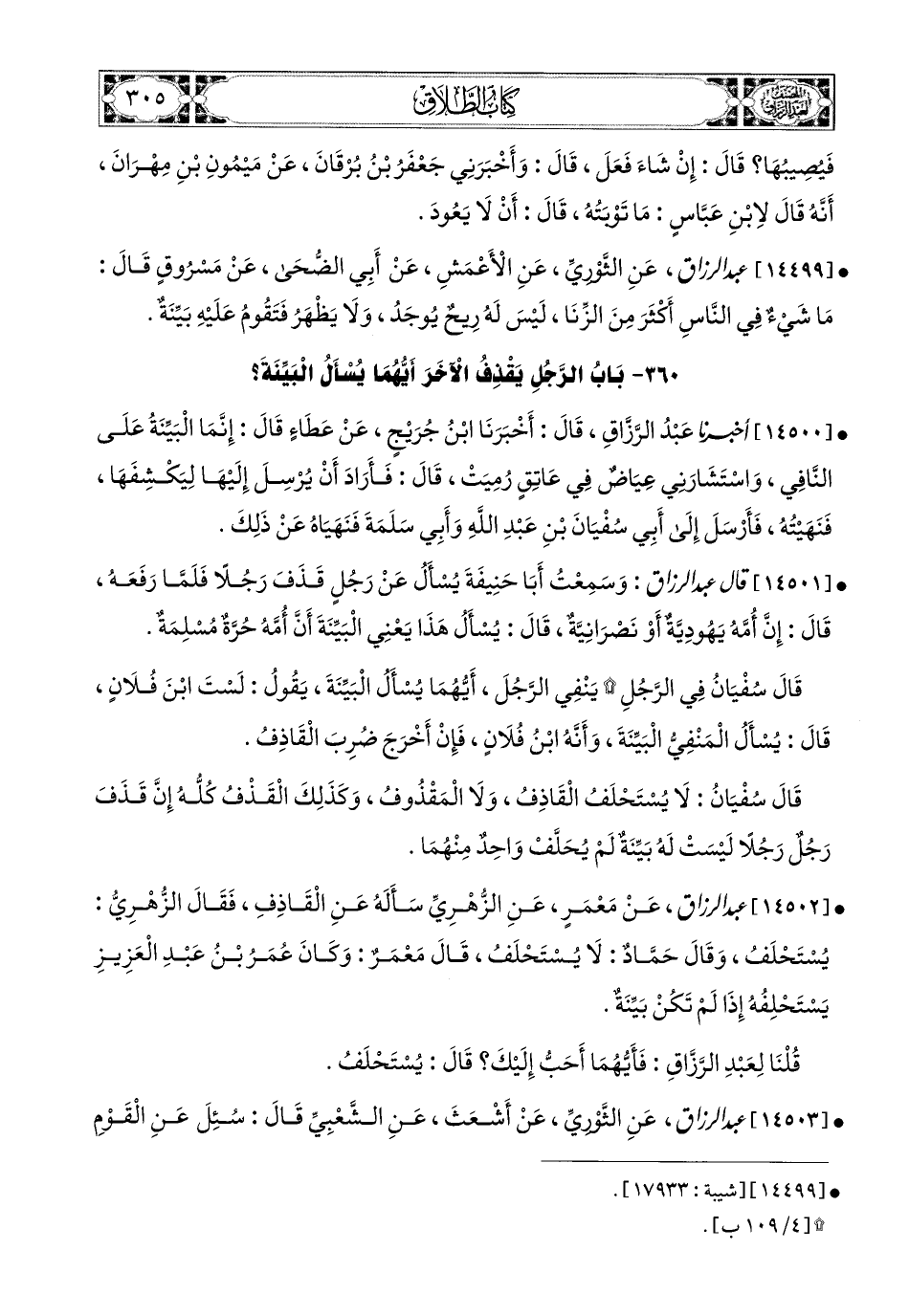 (1) هكذا في طبعتي دار التأصيل، والمكتب الإسلامي، وفي طبعة دار الكتب العلمية: «سَألت الزُّهْرِيِّ، وَحَمَّاد عَنِ الْقَاذِفِ».