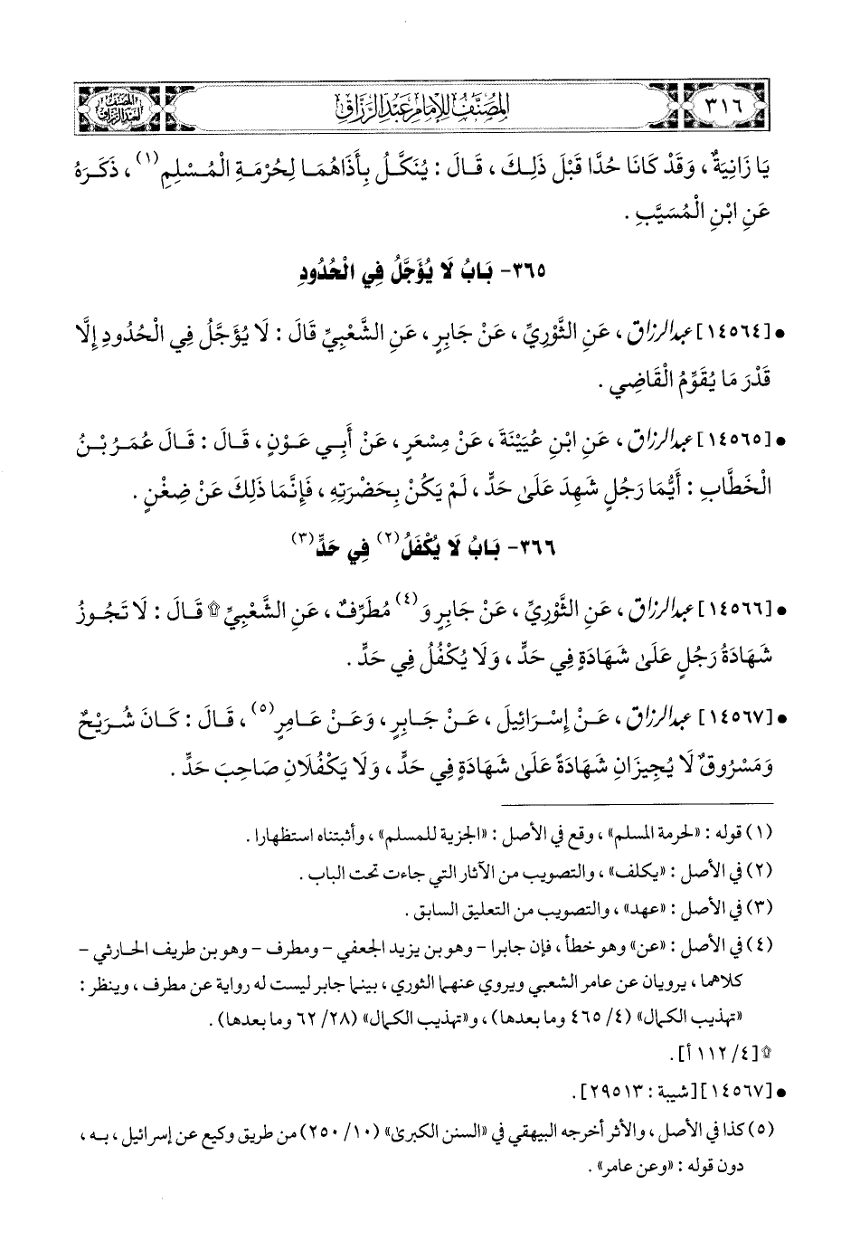 14566- عبد الرزاق، عَنِ الثَّورِيِّ، عَن جَابِرٍ، وَمُطَرِّفٍ، عَنِ الشَّعْبِيِّ، قَالَ: لاَ تَجُوزُ شَهَادَةُ رَجُلٍ عَلَى شَهَادَةٍ فِي حَدٍّ، وَلاَ يَكْفُلُ فِي حَدٍّ.