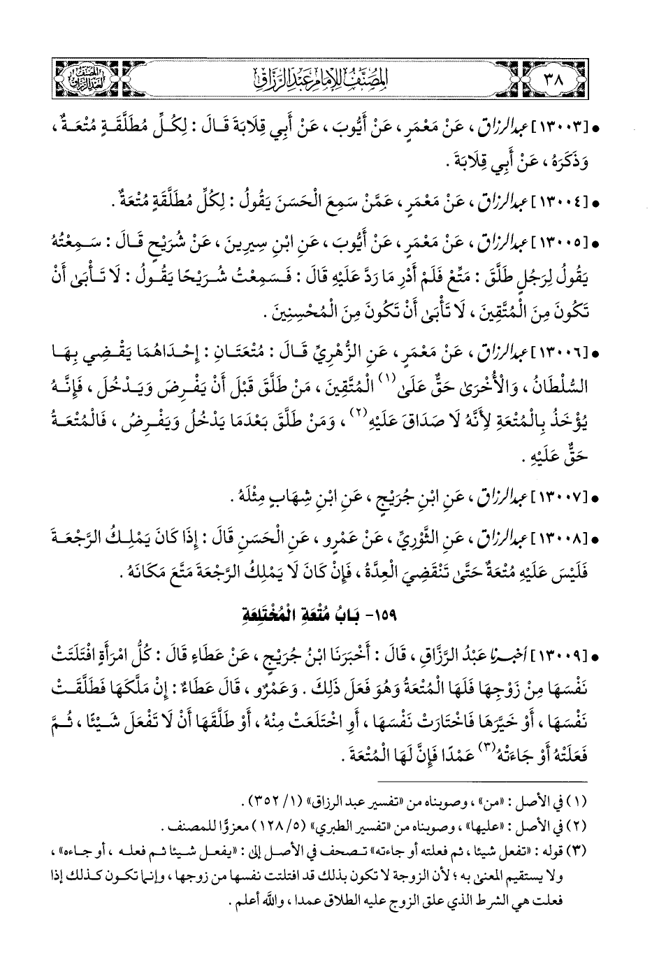 13004- عبد الرزاق، عَنْ مَعْمَرٍ، عَمَّنْ سَمِعَ الْحَسَنَ يَقُولُ: لِكُلِّ مُطَلَّقَةٍ مُتْعَةٌ.