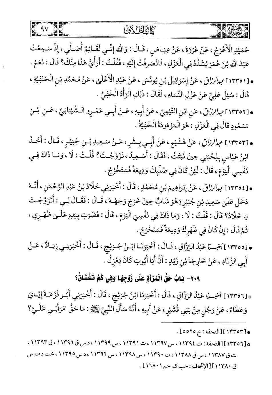 13355- أخبرنا عبد الرزاق، قَالَ: أَخْبَرَنَا ابْنُ جُرَيْجٍ، قَالَ: أَخْبَرَنِي زِيَادٌ، عَنْ أَبِي الزِّنَادِ، عَن خَارِجَةَ بْنِ زَيْدٍ، أَنَّ أَبَا أَيُّوبَ كَانَ يَعْزِلُ.