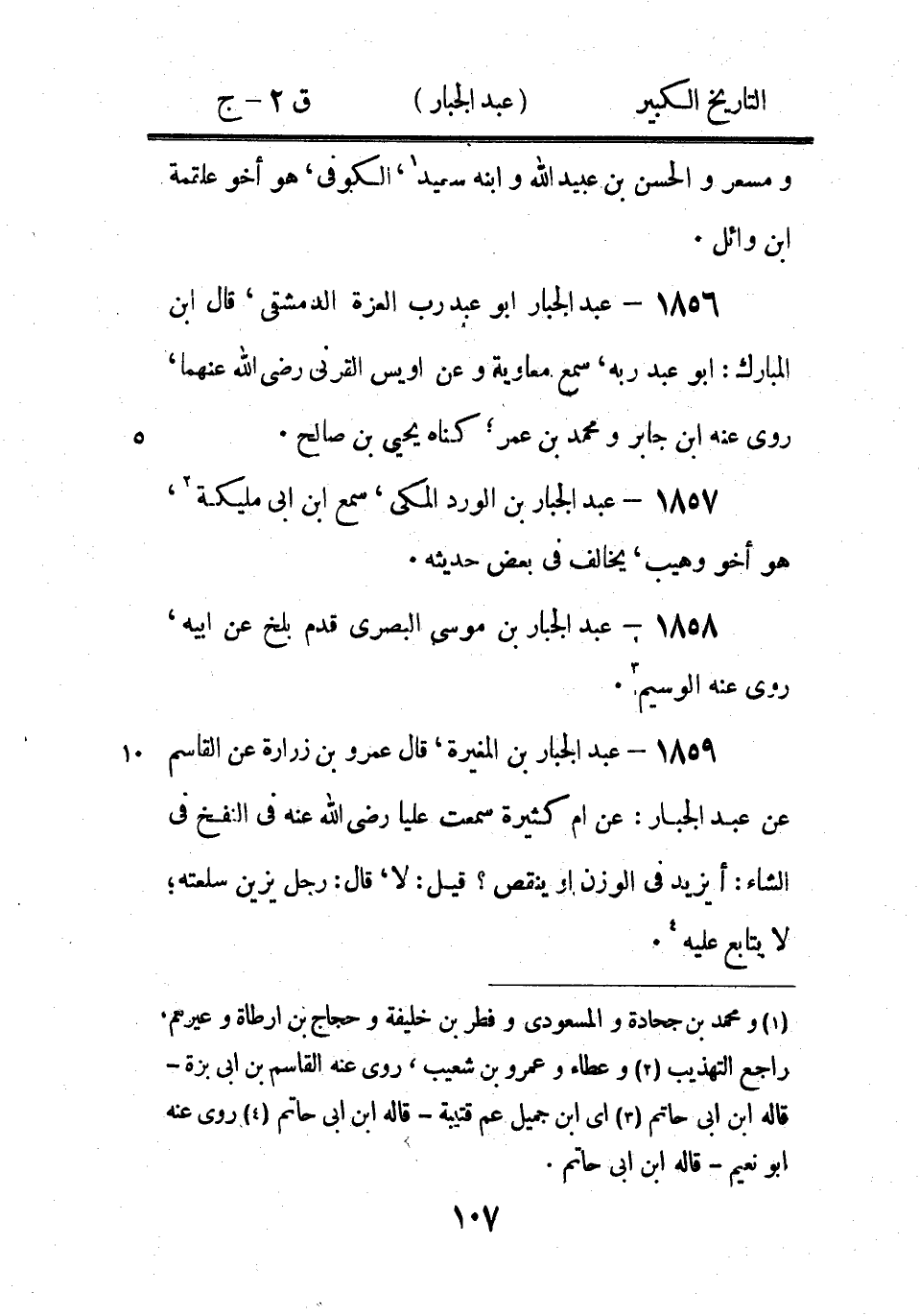 (1) روى عن يزيد بن ابى مالك وعبادة بن نسى، روى عنه الوليد بن مسلم - قاله ابن ابى حاتم (2) كذا في الاصل، ولعل الصواب: حديثه في الشاميين - والله اعلم (3) عيلان بالمهملة، راجع الباب (4) روى عن اسماعيل بن ابى خالد والاعمش وهشام بن عروة وعبيد الله بن عمر، روى عنه نعيم بن حماد ويوسف ابن عدى وابن ابى شيبة - قاله ابن ابى حاتم (5) أي بعد المائة (6) وأبا اسحاق الفزارى ومخلد بن الحسين ومصعب بن ماهان والفضل بن موسى السينانى، روى عنه أبو حاتم - قاله ابن ابى حاتم (7) عبدة بن ابى برزة السجستاني، روى عن منصور بن زاذان والصلت بن حكيم، روى عنه جرير بن عبد الحميد ويحيى بن المغيرة وهشام بن عبيد الله وروى عن عمرو بن ابى قيس ايضا - قاله ابن ابى حاتم (8) كذا في الاصل في نسبة مرو " المروى "، ومر مثل ذلك قبل = (*)
