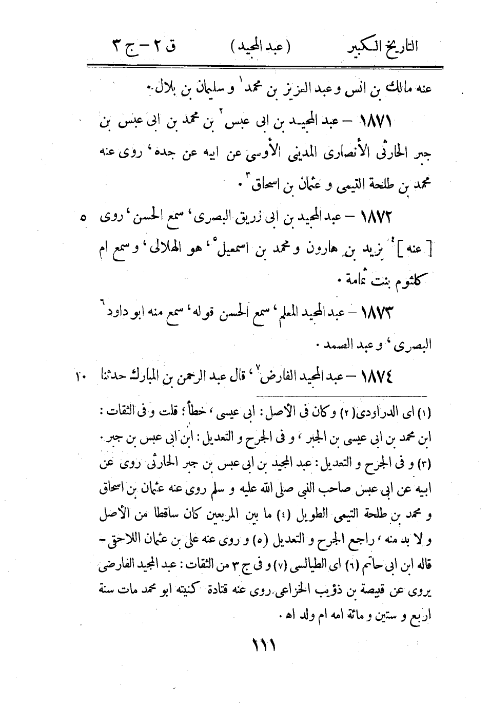 (1) قال ابن ابى حاتم: ويقال ان اسمه سلامة وهو والد عبد الله وأم الدرداء خيرة ولدى ابى حدرد له صحبة روى عنه محمد بن ابراهيم التيمى مرسل (2) وكان في الاصل: المرى، تصحيف، والصواب: المزني، راجع الجرح والتعديل (3) كذا، ولعل الصواب: مرسلا (4) وفى بعض نسخ الجرح والتعديل: مصرف (5) وفى الجرح والتعديل: عبد الرحمن بن عبد الله أبو عبد الله، قال ابن ابى حاتم: روى عن خزيمة بن ثابت وأم سلمة روى عنه عمرو بن ميمون.