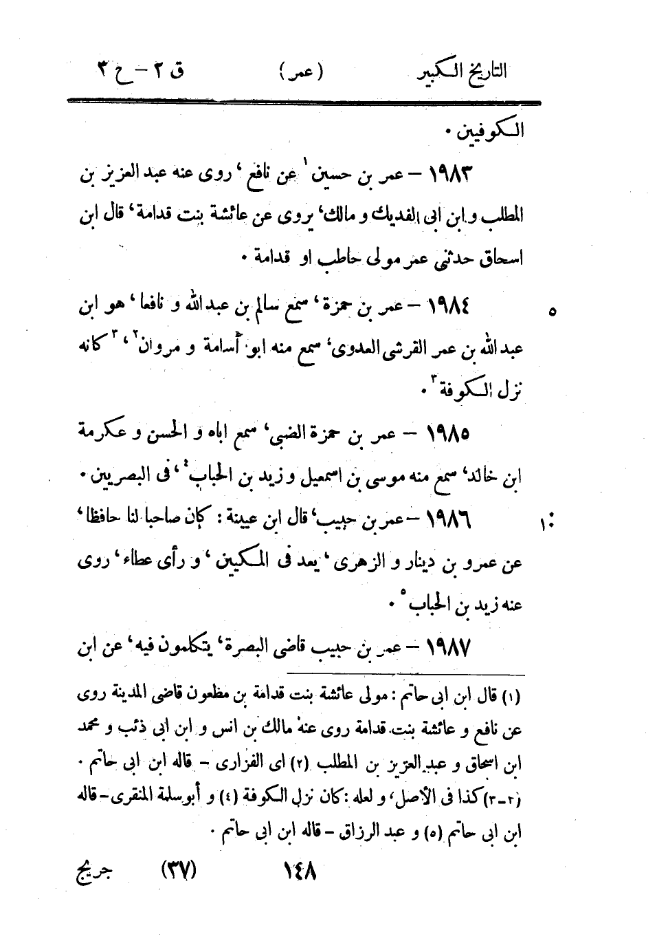 (1) وكان في الاصل: رباح - بالباء الموحدة التحتانية، خطأ، والصواب: رياح - بالياء التحتانية المثناة، راجع التهذيب والتقريب والخلاصة والجرح والتعديل (2) قال ابن ابى حاتم: سمعت ابى يقول قال أبو حفص الصيرفى هو رد (3) قلت ذكره ابن حبان في ج 4 من ثقاته فقال: عمر بن زياد يروى عن غيلان بن جرير روى عَنْهُ عَبْد الصمد بْن عَبْد الوارث اه (4) قال ابن ابى حاتم: أبو حفص الباهلى، وفى الثقات واللسان: الهلالي كوفى، فالباهلي تصحيف، قلت وفى الثقات ج 3: عمر بن هلال الباهلى يروى عن ابى غالب عن ابى امامة روى عنه العلاء بن عمر اه، فهذا يشبه ذاك فو الله اعلم ما بينهما من النسبة (5) والسدى وعبد الملك بن عمير، روى عنه أبو نعيم وأبو غسان - قاله ابن ابى حاتم.
