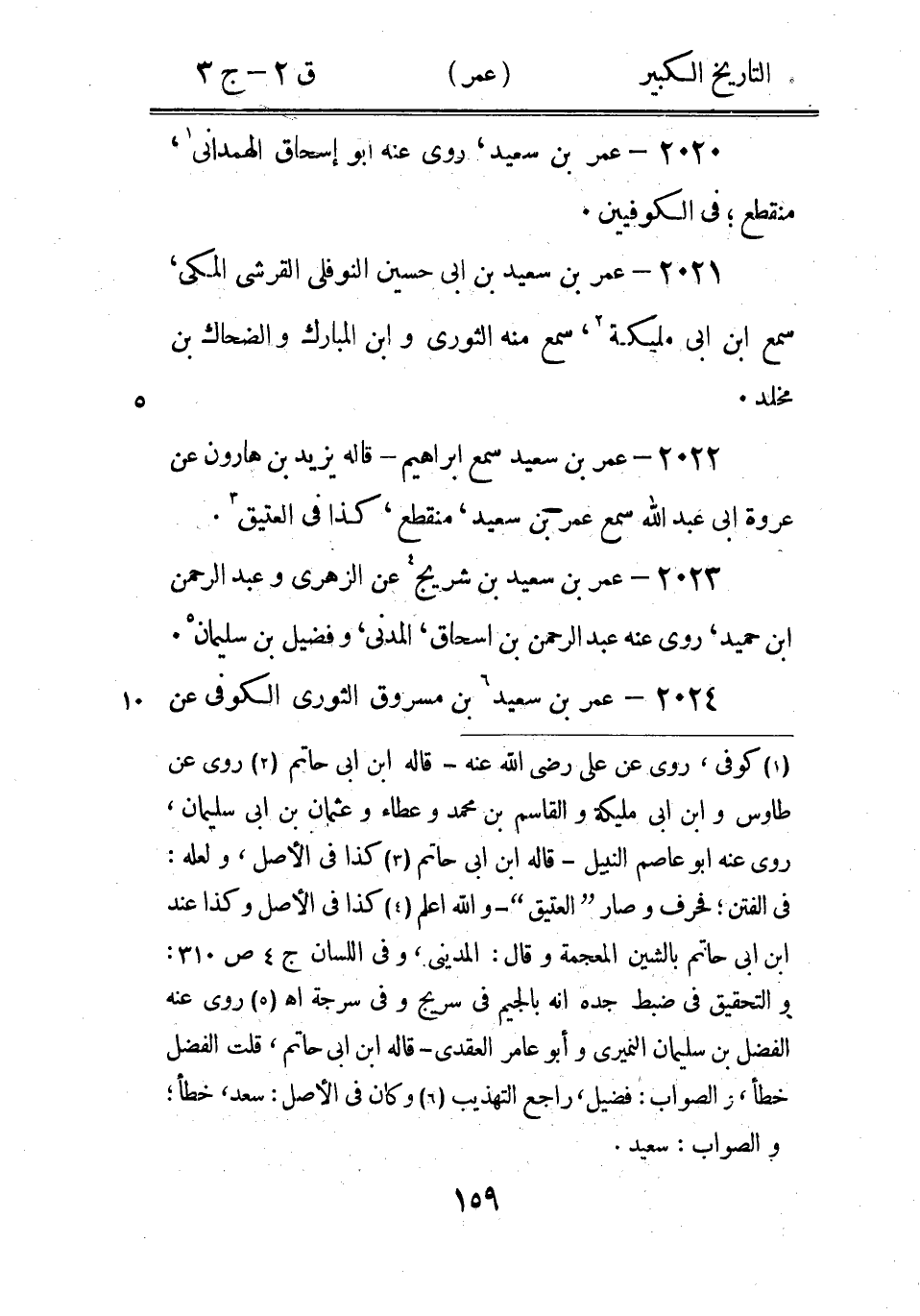 2057 - عُمَر بْن عَبْد اللَّه 5 بْن عَبْد اللَّه بْن عُمَر بْن الْخَطَّاب الْقُرَشِيّ العدوي 6، روى عَنْهُ يزيد بْن الْهَادِ، وَقَالَ ابْن تليد ح ابن وهب اخ ابْن أَبِي الزناد عَنْ أَبِيهِ أن عُمَر بْن عَبْد اللَّه بْن عُمَر أخبره عَنْ