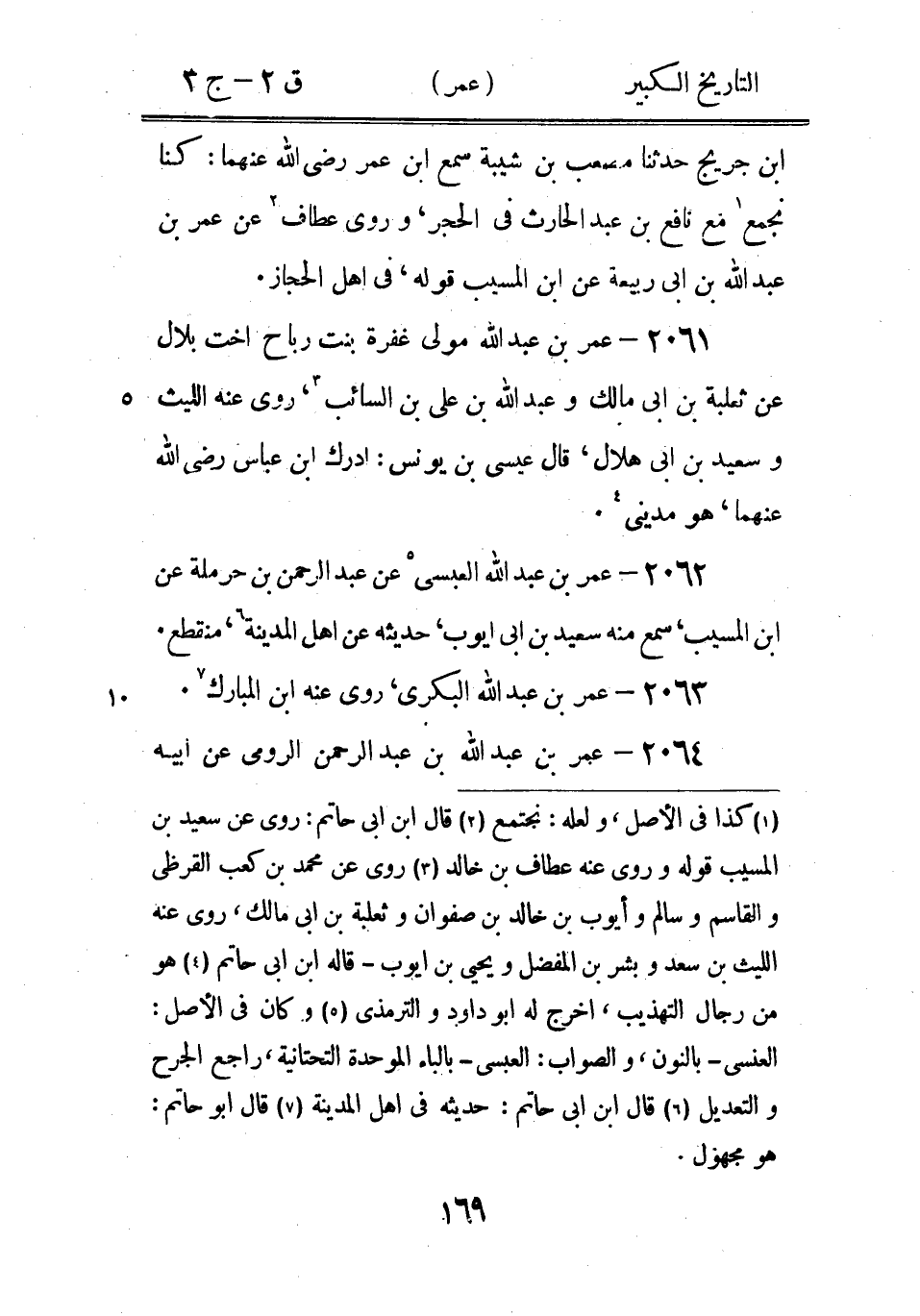 (1) أبو سلمة موسى بن اسمعيل، راجع الجرح والتعديل (2) قال ابن ابى حاتم: روى عنه ضمرة (3) الصنعانى - قاله ابن ابى حاتم (4) قال ابن ابى حاتم: وهو ابن عبيد بن ابى امية اخو محمد ويعلى ابني عبيد (5) روى عن ابى اسحاق الهمداني وسماك بن حرب ومنصور ومغيرة وآدم بن على، روى عنه اخوه يعلى وأبو كريب والحسن بن عرفة وأحمد بن حنبل - قاله ابن ابى حاتم.