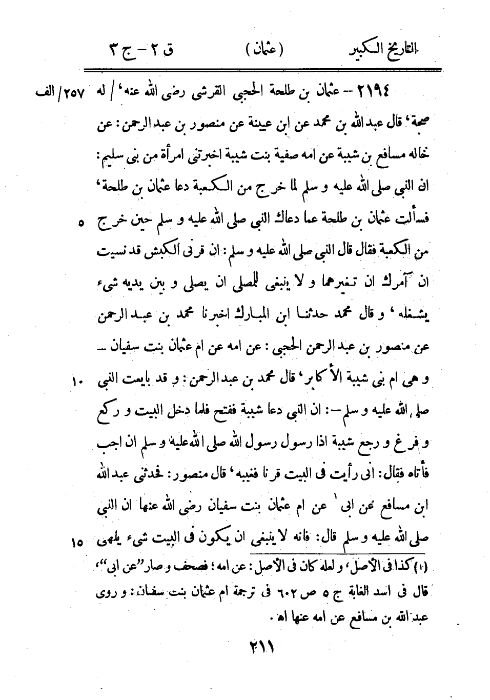 2217 - عثمان بْن حسان العامري 1 عَنْ فلفلة الجعفِي عَنْ عَبْد اللَّه رَضِيَ اللَّهُ عَنْهُ قَالَ: نزل القرآن على نبيكم صَلَّى اللَّهُ عَلَيْهِ وَسَلَّمَ على سبعة أحرف - قَالَه ابن يونس ومالك بن اسمعيل عَنْ زهير سَمِعَ أَبَا همام الوليد بْن قيس عَنْ عُثْمَانَ، قَالَ ابْن أَبِي شيبة عَنْ أسامة عَنْ سُفْيَان: عَنِ الوليد بْن قيس السكوني عَنِ القاسم بْن حسان.