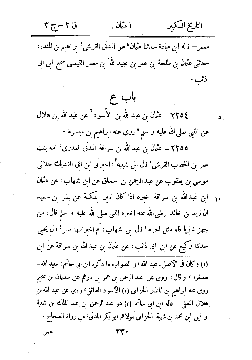 (1) قال ابن ابى حاتم: عثمان بن عبد الرحمن بن حصين بن عبيدة بن علاق أبو عبد الرحمن القرشى شامى دمشقي (2) وعمرو بن قيس السكوني - قاله ابن ابى حاتم (3) وفى نسخة: روى عنه، مكان سمع منه (4) وهشام بن عمار والوليد ابن مسلم - قاله ابن ابى حاتم (5) قال ابن ابى حاتم: حرانى رأى خصيفا وروى عن ابن ثوبان وأشعث بن عبد الملك وهشام بن حسان وعبيد الله ابن عمر وسعيد بن عبد العزيز وعبد الله بن العلاء وجعفر بن برقان روى عنه النفيلى وسليمان بن شرحبيل (4) وكان في الاصل: الوصافى، خطأ، والصواب: الوقاصى، من نسل سعد بن ابى وقاص، وهو ابن عبد الرحمن بْن عُمَر بْن سعد بْن أَبِي وقاص، روى عن عمته عائشة بنت سعد وعن سعيد المقبرى وعطاء والزهرى - قاله ابن ابى حاتم.