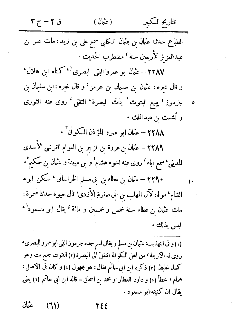 2318 - عثمان بْن مُعَاوِيَة الْقُرَشِيّ 4: قلت للحسن: ما تَقُولُ فِي الظهر؟ قَالَ: بفاتحة الكتاب، سمع منه موسى بن اسمعيل، الْبَصْرِيّ.