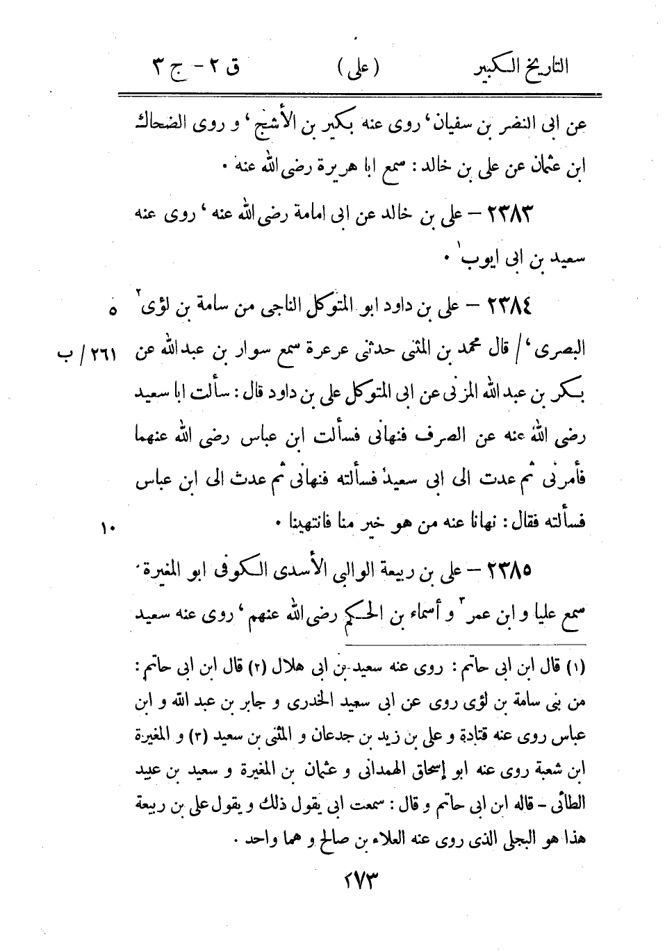 2406 - عَلِيّ بْن أَبِي طلحة أَبُو الْحَسَن الْهَاشِمِيّ 2، كَانَ بالشام، عَنْ مجاهد ومُحَمَّد بْن زَيْد وراشد بْن سعد، روى عَنْهُ بديل بْن ميسرة ومعمر وعبد اللَّه بْن سالم ودَاوُد بْن أَبِي هند، وَقَالَ عَبْدُ اللَّهِ بْنُ صَالِحٍ حَدَّثَنِي مُعَاوِيَةُ عَنْ عَلِيِّ بْنِ أَبِي طَلْحَةَ حَدَّثَهُ: ان ابا الوداك جبر بن نوف 3