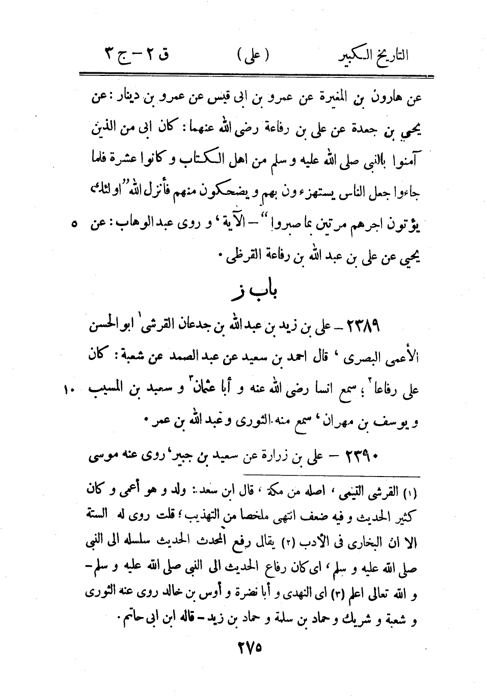 (1) قال ابن حبان في ج 3 من ثقاته: عَلِيّ بْن عَبْد اللَّه بْن رفاعة القرظي من اهل المدينة يروى عن الربيع بن معبد (2) وكان المكتوب في الاصل تحت الازدي " العماني " فلعله من تروك الاصل أي الازدي العماني أو زيادة توضيح للازدي - والله اعلم (3) ومجاهد بن جبر وحميد الطويل وغيلان بن جرير - قاله ابن ابى حاتم (4) قال ابن ابى حاتم: ابن راشد - مكان ابن ابى راشد، وقال: نزيل الرى اصله من مرو وهو بصرى يقال له مولى قراد كان سكن دار ابى الاقوال روى عن عبد الكريم ابى امية كتابا وروى ابن = (*)