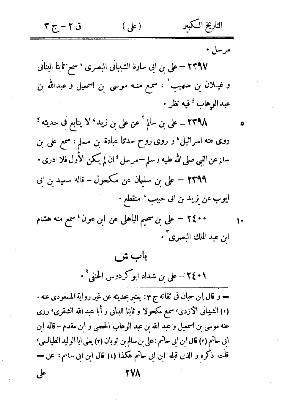 2418 - عَلِيّ بْن عَبْد الأعلى بْن عامر أَبُو الْحَسَن الثعلبي الأحول الكوفِي عَنْ كثير بْن زياد 4، روى عَنْهُ زهير وشجاع بْن الوليد.
