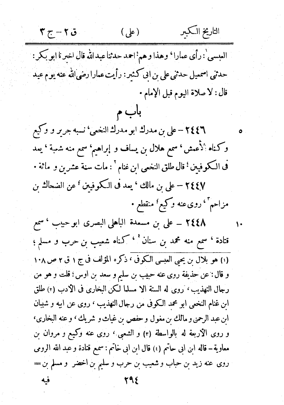 (3) قال المؤلف في ج 2 ق 2 ص 335: الضحاك بن على عن ابيه سمع اباذر فِي الصدقات قولَهُ سَمِعَ منه إِسْحَاق الغزال، وقال ابن ابى حاتم: على سمع اباذر روى عنه ابنه الضحاك سمعت أبى يقول ذلك ويقول هو مجهول (4) وبهامش الاصل: من رواه بالنون فقد سها اه، قلت يعنى ان " عنبسة " خطأ.