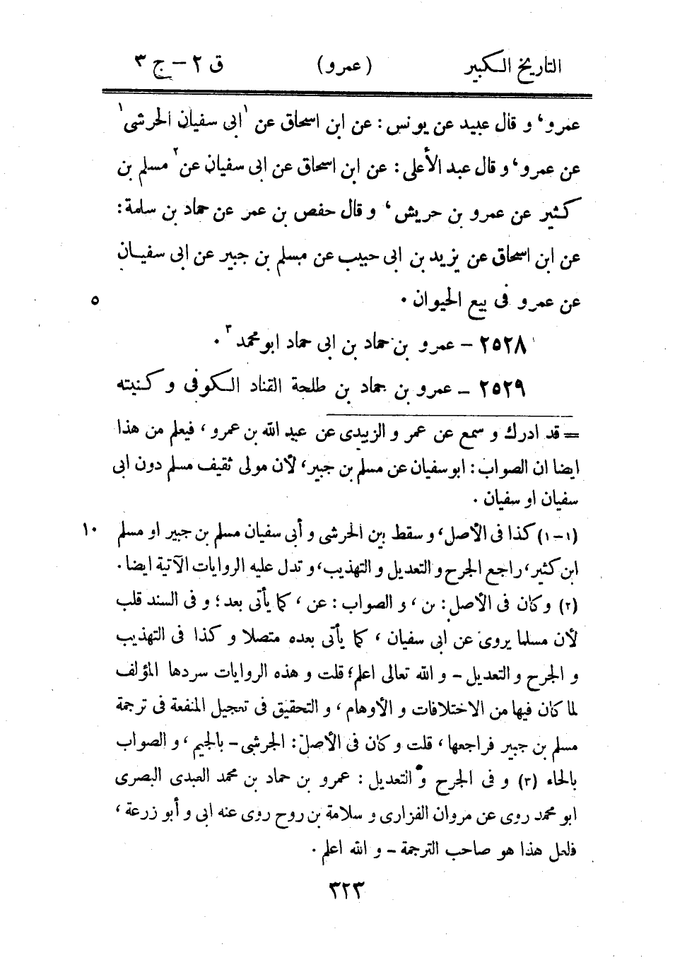 2553 - عَمْرو بْن زرارة 5، / عَمْرو بْن عَلِيّ حَدَّثَنَا أَبُو أَحْمَد حَدَّثَنَا إسرائيل وشريك: عَنْ أَبِي إِسْحَاق عَنْ عَمْرو بْن زرارة: مر عَلِيّ عَبْد اللَّه رَضِيَ الله عَنْهُ وأنا أقص، وعَنِ ابْن دَاوُد 6 عَنْ عَلِيّ بْن هاشم عَنْ