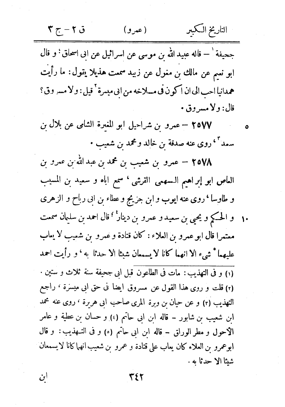(1) سقير الضبى البصري سَمِعَ عُمَر قولَهُ فِي الصوم، روى عَنْهُ عمرو بن عبد الرحمن اه، ذكره في ج 2 ق 2 ص 213 من التاريخ، وفى الجرح والتعديل: سفيان، خطأ (2) وكان في الاصل: عبد الله، والصواب: عبيد الله، وهو القريعى الذى يأتي في السند التالى (3) وكان في الاصل: شفيه، خطأ، وقد مر تحقيقه (4) قال ابن ابى حاتم: سمع منه عطاء بن السائب وعبد الملك بن عمير وأبو عمران الجونى.