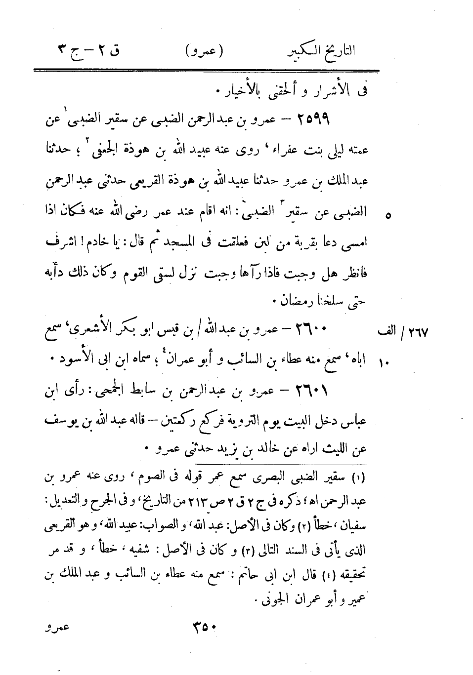 2630 - عَمْرو بْن عَمْرو الأحموسي 5، سَمِعَ مخارقا، روى عنه أبو المغيرة.