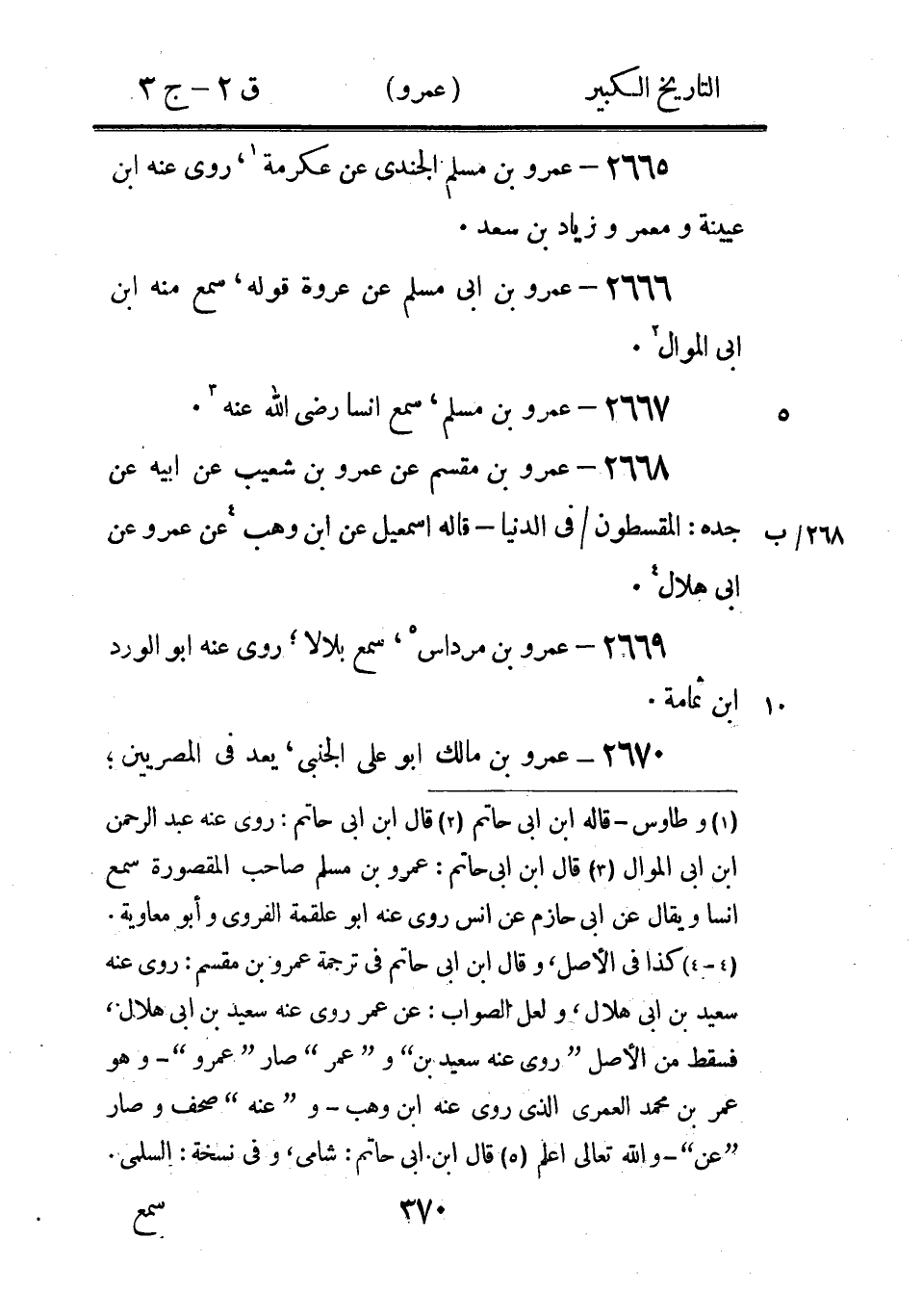 1 - 1) وفى الجرح والتعديل: ابن اسيد، وكذا هو في التهذيب (2) روى عنه عيسى بن يونس وأبو عاصم النبيل - قاله ابن ابى حاتم (3) قال أبو حاتم: هو مضطرب الحديث (4) قال ابن ابى حاتم: مصرى (5) قال أبو حاتم: هو مجهول (6) قال ابن ابى حاتم: الدمشقي روى عن سالم روى عنه الاوزاعي.
