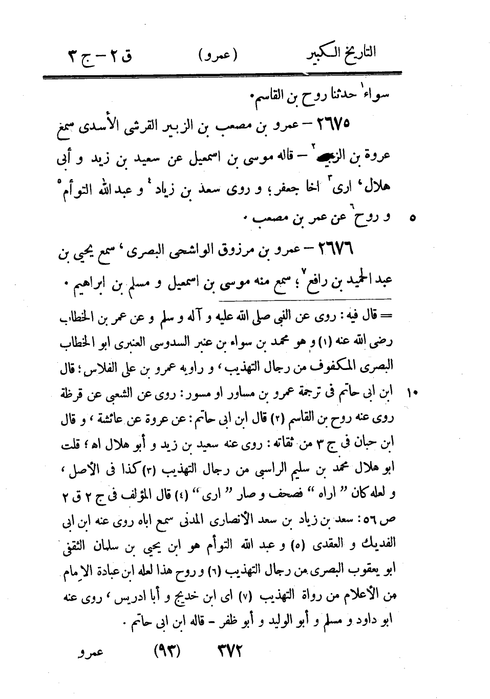 2700 - عَمْرو بْن هرم بْن حيان الازدي، قال 3 على عن محمد ابن يزيد 3 عَنْ أَبِي العلاء: عَنْ قتادة: صليت عن عَمْرو بْن هرم بعد ما دفن 4 حَدَّثَنِي بِهِ وَقَالَ: كَانَ عَلِيّ حدث بِهِ عَنْ عبد الرزاق انا معمر: عن