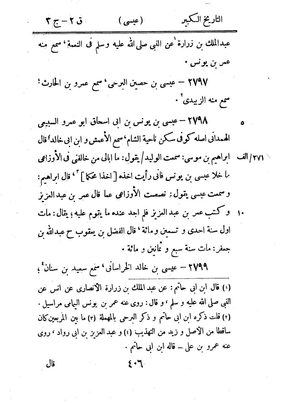 2825 - عِمْرَان بْن الجعد عَنِ الأَسْوَدِ، روى عَنْهُ حكيم بْن جُبَيْر، الكوفِي، يقال عَنْ عَلِيّ: أَنَّهُ 2 أخو إِبْرَاهِيم 2، ويقال عَنِ ابْن معين: أن سوادة أخوهم أصلهم من الكوفة ثم صاروا إلى الري.