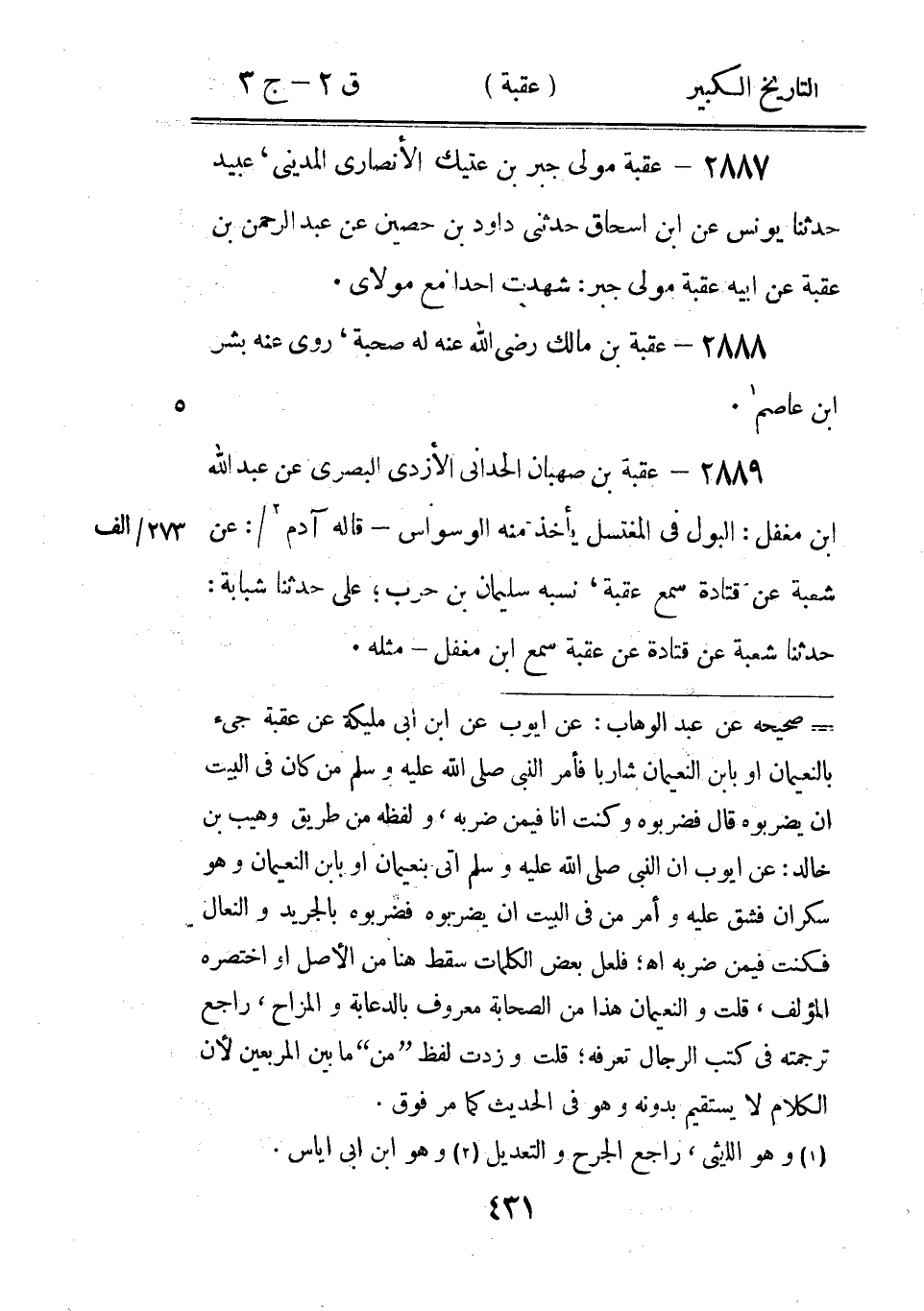 (1) وكان في الاصل: فأقبلت، والصواب: فأقلب، وفى التهذيب: قلت قال البخاري في التاريخ قال على قال عبد الصمد بن عبد الوارث عقبة من أهل الشام قَالَ أَبِي ذهبت بشُعْبَة إليه فقلبه يعنى قال الجلاس (2) قال ابن ابى حاتم: روى عن