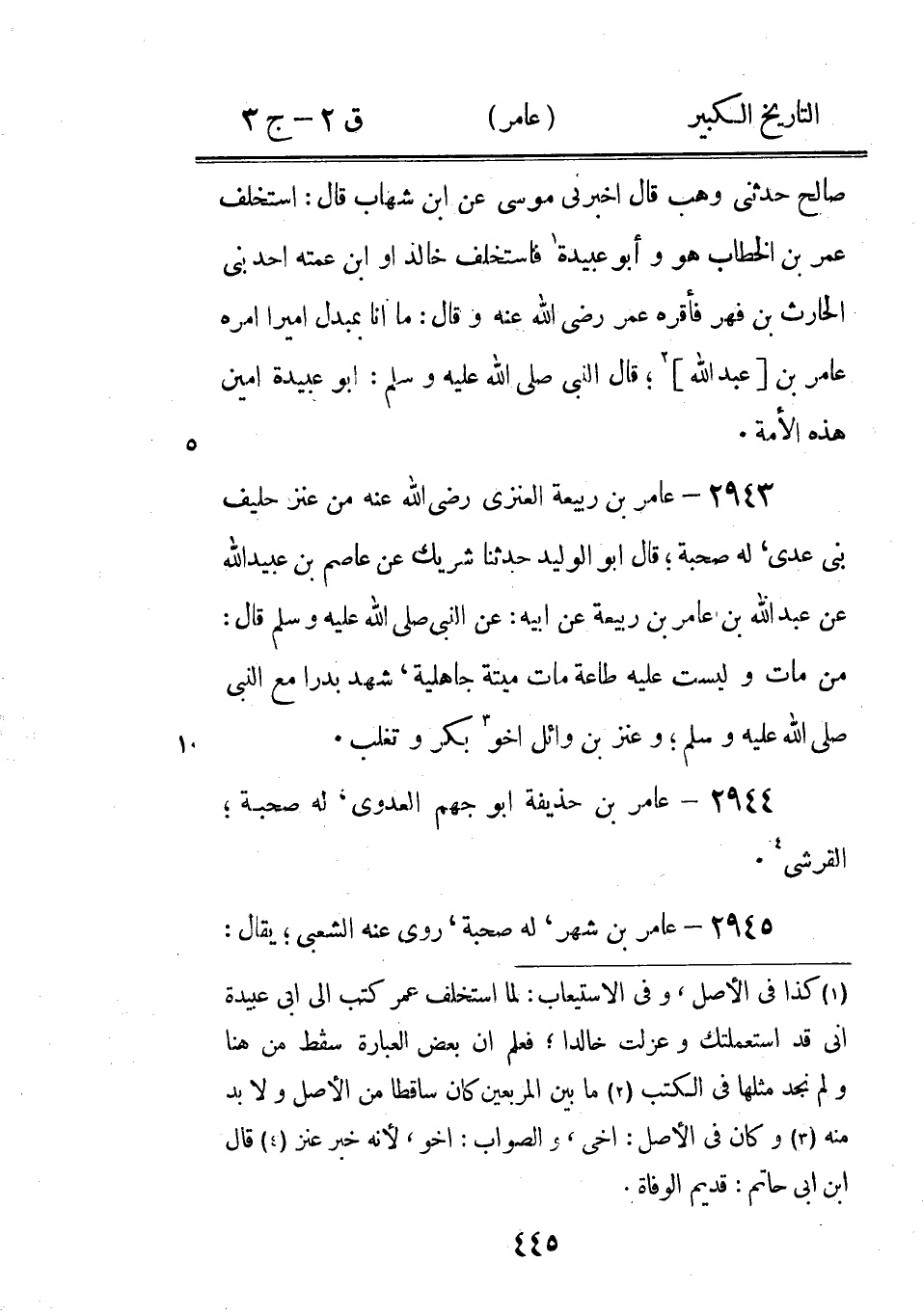 2967 - عامر بن لدين 1 الاشعري، سمع ابا هريرة، روى معاوية بن صالح عَنْ أَبِي بشر، وَقَالَ عَمْرو بْن يونس حدثنا سليمان بن