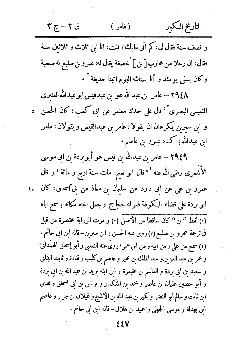 2972 - عامر بْن عُبَيْدة الباهلي قاضي البصرة، رأى انسا رضى الله عنه، سمع شعبة و [ابن] مغلس 1.