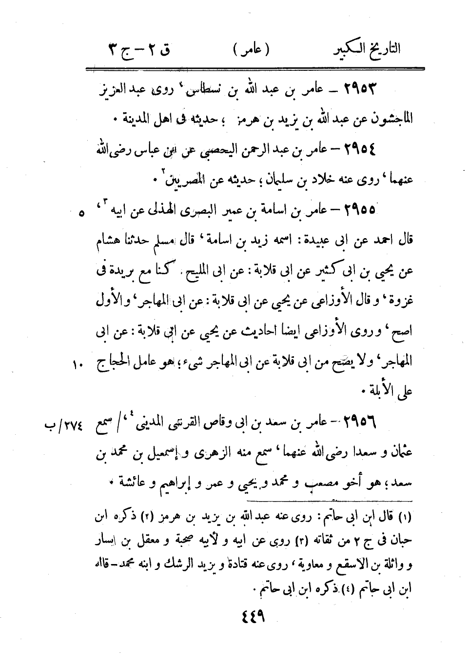 (1) قال ابن ابى حاتم: روى عن جده سعد بن ابى وقاص روى عنه حفص ابن النضر السلمى (2) وكان في الاصل: جابر، خطأ (3) قال ابن حبان في ج 3 من ثقاته: عامر بن عقبة العقيلى يروى عن ابيه عن ابى هُرَيْرَةَ روى عَنْهُ يحيى بْن أَبِي كثير (4) هو لقمان بن عامر الوصابى أبو عامر الحمصى من رجال التهذيب.