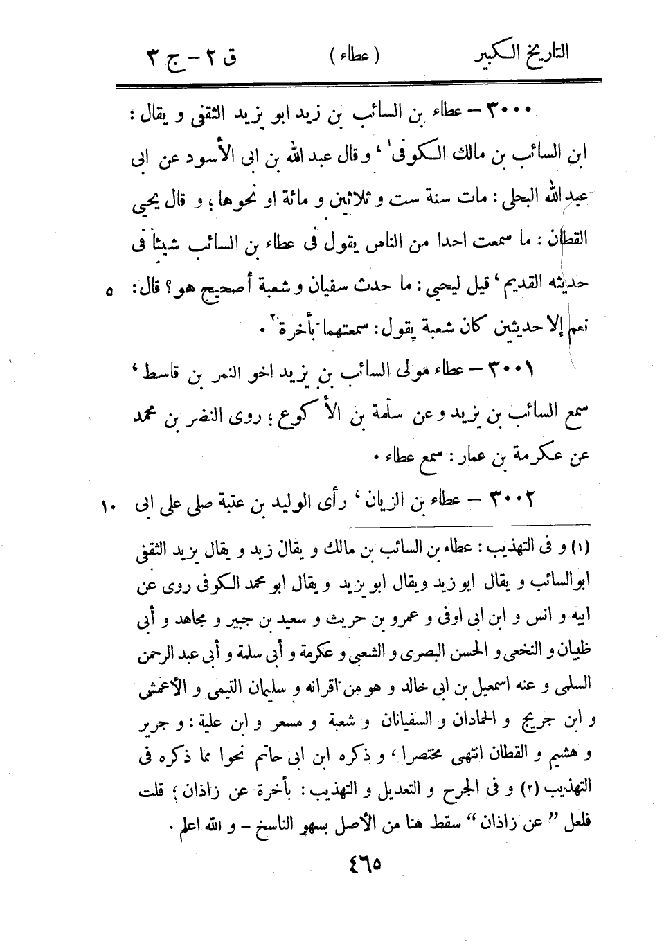 (2) كذا في الاصل، ولعل الصواب: عطاء خباب عنه، قال ابن ابى حاتم: وروى جَعْفَر بْن ربيعة عَنْ صالح بْن عطاء بن خباب عنه (3) وفى التاريخ ج 2 ق 2 ص 287: مولى بنى الديل (4) قلت فهذا والذى قبله عند المؤلف اثنان وهما عند ابن ابى حاتم واحد، كما نقلت لك عنه فوق - والله اعلم (5) قال ابن ابى حاتم: روى أبو سلمة موسى بن اسمعيل عن ابان بن خالد عنه (6) وحكيم بن شريك الهذلى وعبد الله بن مسروح شفى الاصبحي، روى عنه عمرو بن الحارث وسعيد بن ابى ايوب ونافع بن يزيد وابن لهيعة - قاله ابن ابى حاتم (7) قلت وكان = (*)