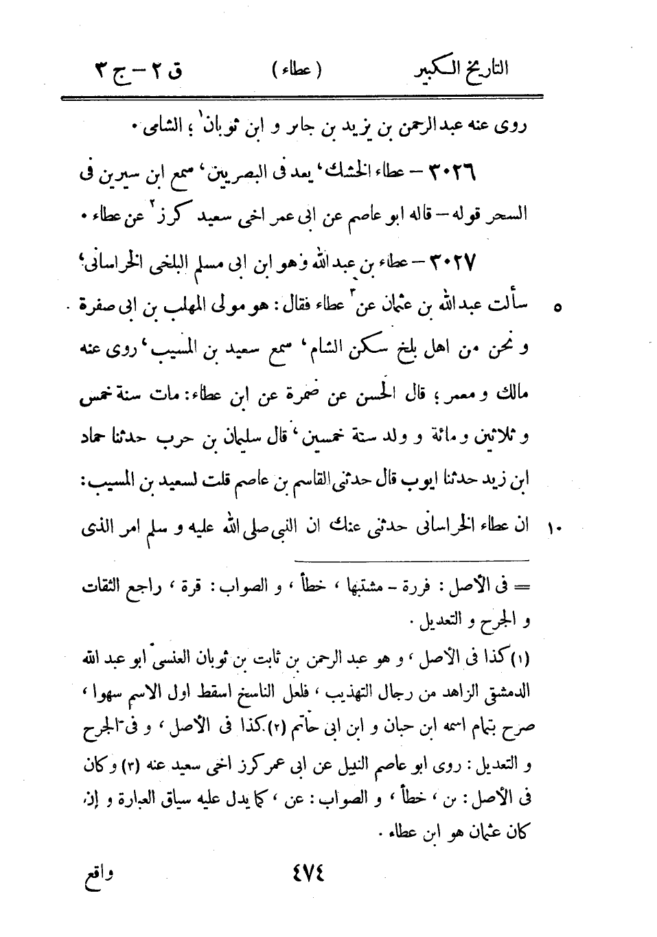(1) والباء في الاصل غير منقوطة والثاء منقوطة، وفى الجرح والتعديل: حبتر، وهكذا هنا ايضا شكله الا ان الباء نقطتها ساقطة وبعد الباء ثاء مثلثة، والصواب بالمثناة كما في الجرح والتعديل، وفى القاموس: الحبتر كجعفر الثعلب والقصير كالحبيتر وقيس بن حبتر تابعي (
