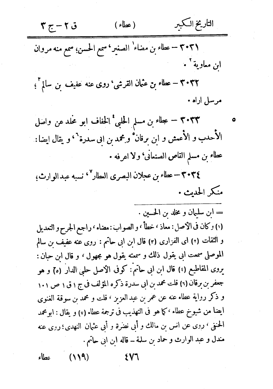 3056 - عاصم بْن عُبَيْد اللَّه بْن عاصم بْن عُمَر بْن الْخَطَّاب بْن نفِيل الْقُرَشِيّ العدوي المديني، رأى عَبْد اللَّه بْن عُمَر وأباه 2 وعبد اللَّه بْن عامر بْن ربيعة، سَمِعَ منه الثوري وشُعْبَة ومالك بْن أنس ويحيى بْن سَعِيد وابْن عجلان، قَالَ عَلِيّ قَالَ سُفْيَان: ذهبْنا إلى عاصم سنة ثلاث