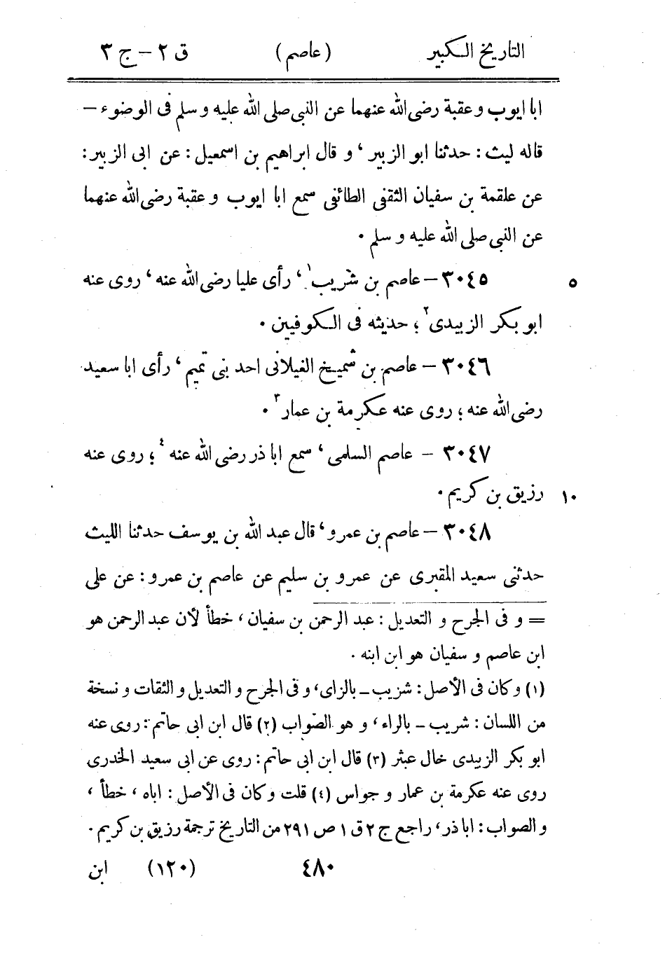 3070 - عاصم بْن عمير 4 العنزي / عَنْ أَنَسٍ، روى عنه محمد ابن ابى اسمعيل 5، وَقَالَ آدَم حَدَّثَنَا شُعْبَة: سَمِعَ عَمْرو بْن مرة: عن عاصم العنزي عن نَافِعِ بْن جُبَيْر عَنْ أَبِيهِ: رَأَى النَّبِيّ صَلَّى اللَّهُ عَلَيْهِ وسلم كبر