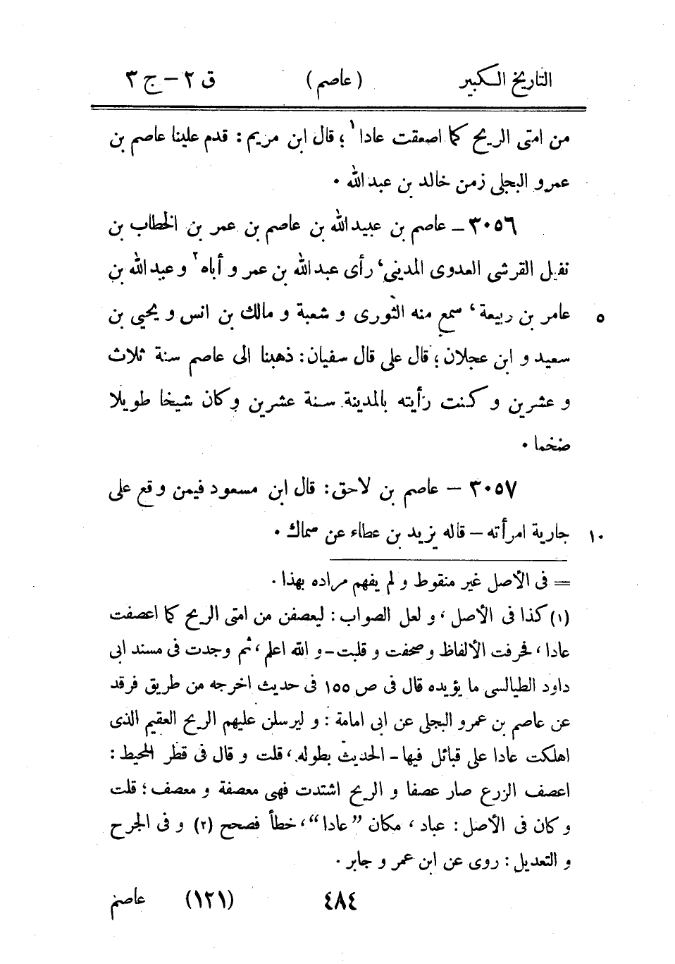 (2) وفى ج 2 من ثقات ابن حبان: عاصم بن بشر السلولى ادرك جماعة من اصحاب النبي صلى الله عليه وسلم روى عنه اهل العراق مات في ولاية بشر بن مروان على العراق، ولم نجد صاحب الترجمة ولا اباه بشر ابن البراء (3) وقال ابن ابى حاتم: روى عن جدته اسماء وعبيد الله بن عبد الله بن عمر روى عنه هشام بن عروة (