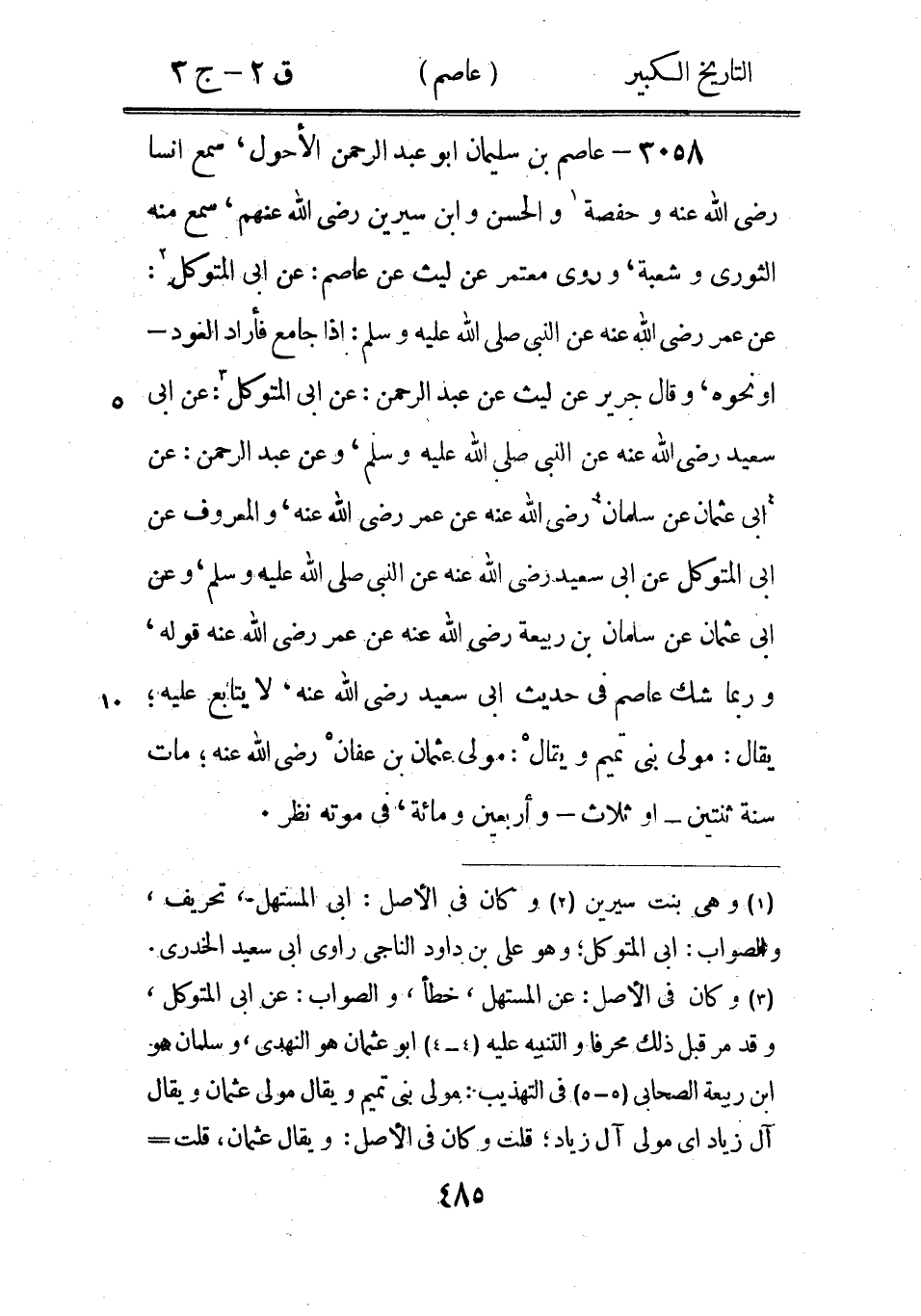 3085 - عاصم بْن راشد، سَمِعَ الْحَسَن، روى عَنْهُ سهل بْن حصين 1، يعد فِي الْبَصْرِيِّينَ.
