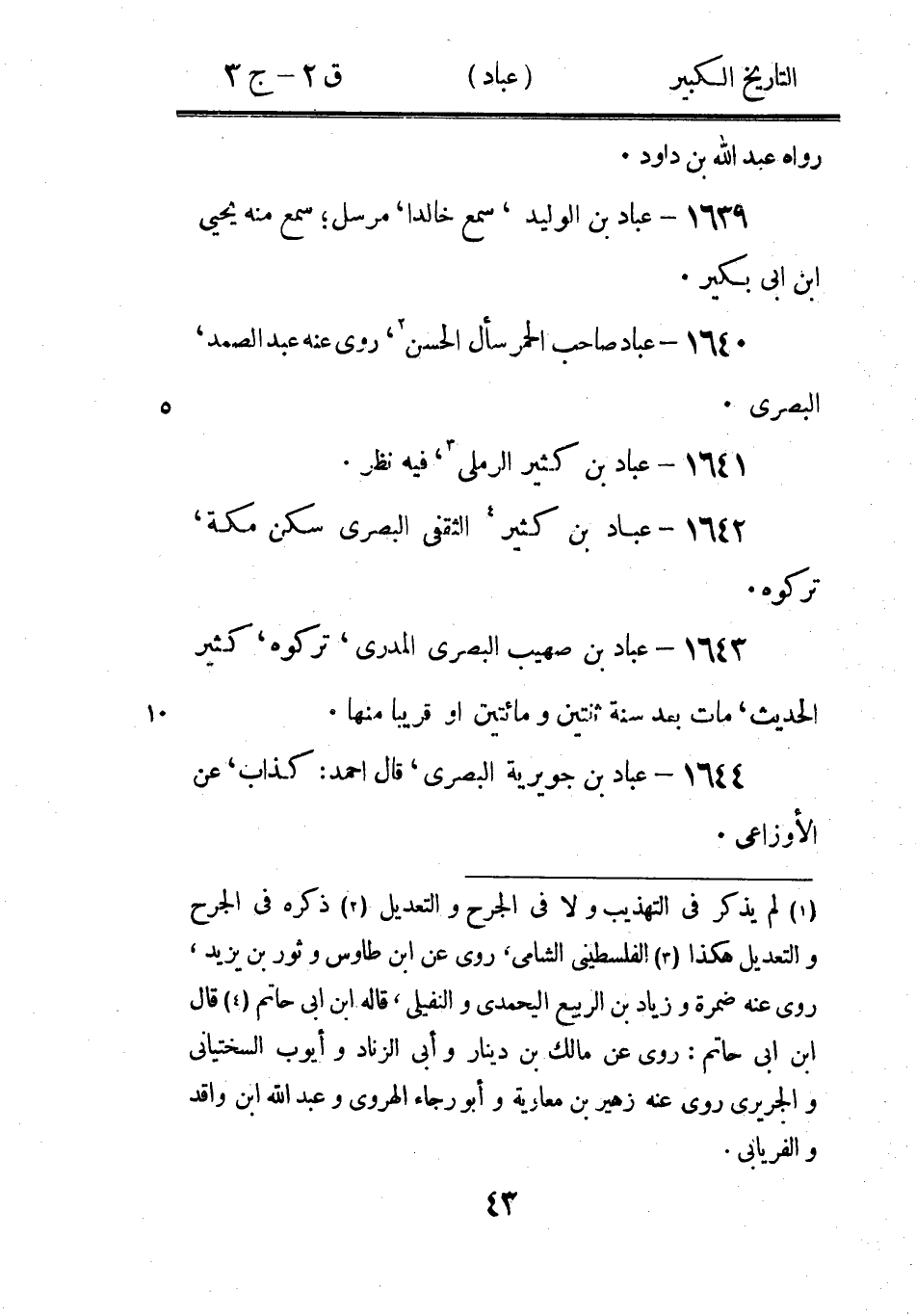 (1) روى عن ابيه، روى عنه أبو داود وأبو سلمة موسى بن اسمعيل - قاله ابن ابى حاتم (2) وكان في الاصل: زرارة، مكان بزة، والصواب: بزة، كما هو في الجرح والتعديل، وذكره المؤلف في ج 4 ق 1 ص 167 فقال: وهو ابن نافع عَنْ مجاهد وسَعِيد بْن جُبَيْر روى عنه عَمْرو بْن دينار وعبد الملك بْن ابى سليمان، قلت هو من رجال التهذيب روى له الستة، وأما ابن ابى زرارة فلم يذكره احد - والله اعلم (3) وأبو بكر الحنفي وعلى بن ثابت الجزرى وأبو عاصم وعبيد الله ابن موسى وابن وهب - قاله ابن ابى حاتم.