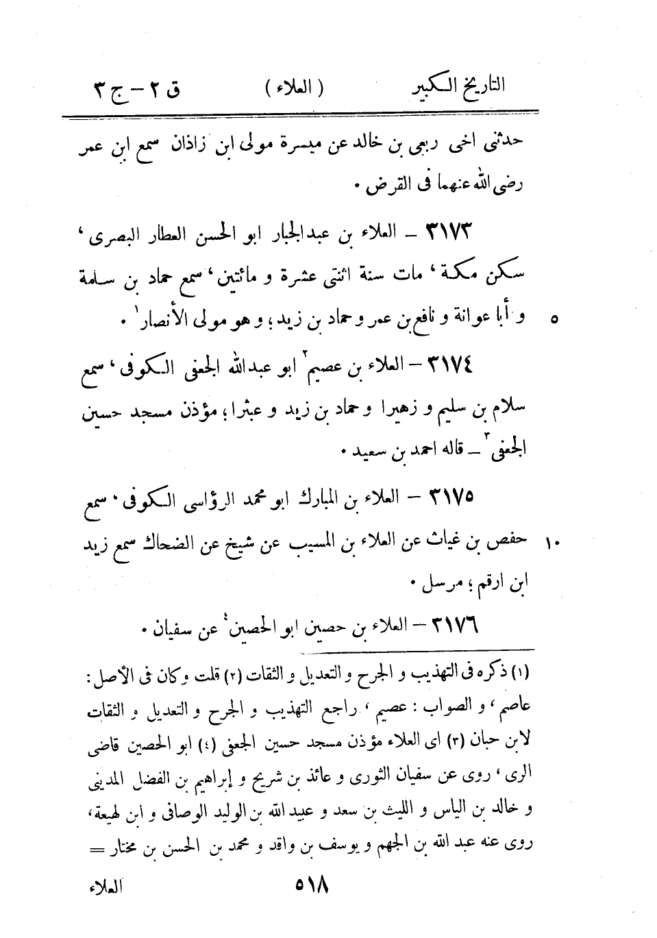 (1) قال ابن ابى حاتم: روى عن ابى السمين حيان بن جحدر، وقال في آخر الترجمة: شيخ مجهول، وكذلك في اللسان (2) ذكره ابن ابى حاتم وابن حبان في ج 3 من ثقاته (3) أي الراسبى (