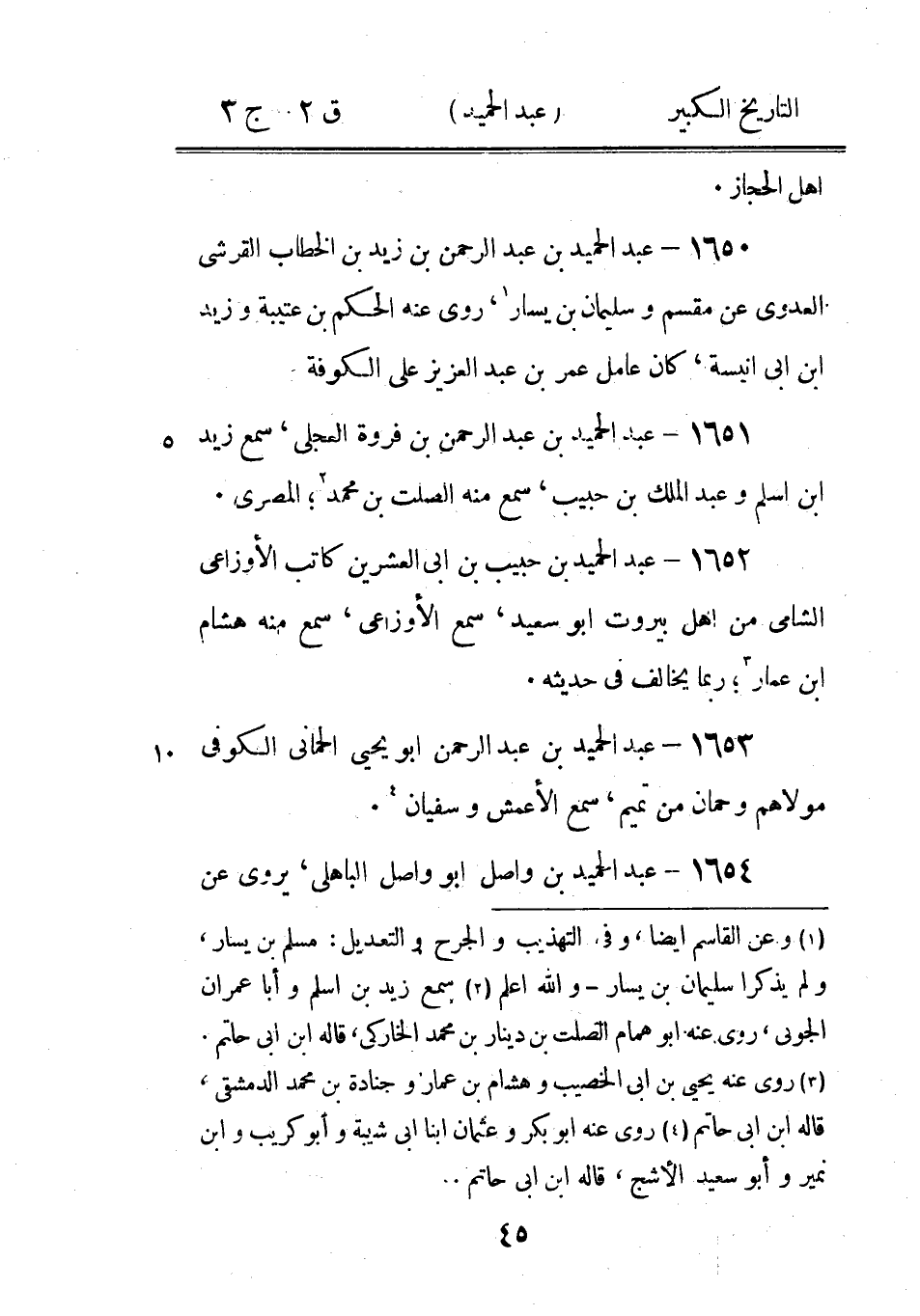 في الاصل: حيان - بالياء المثناة، خطأ، روى عنه البخاري (6) هو عبد الحميد بن وهب أبو وهب، راجع الجرح والتعديل وسيذكره المؤلف ايضا (7) هو عيسى بن موسى البخاري - قاله ابن ابى حاتم.
