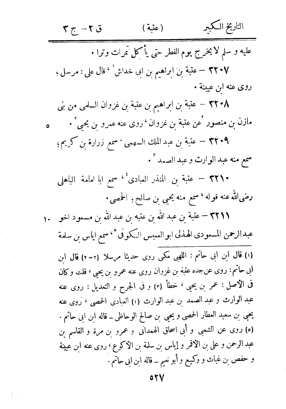 وفى ج 2 من ثقات ابن حبان: عمير مولى بنى يربوع يروى عن سعد روى عنه عطاء (3) مابين المربعين كان ساقطا من الاصل ولابد منه (4) كذا في الاصل، ومر عن ابن حبان بأنه روى عنه عطاء - والله اعلم (5) سمع ابن عمر وأبا هريرة وأبا ثعلبة الخشنى، روى عنه الأوزاعي وعبد الرَّحْمَن بْن يزيد بْن جَابِر ومحمد بن مهاجر والعلاء بن عتبة اليحصبى - قاله ابن ابى حاتم (6) قلت سنان بن جرير ذكره المؤلف في ج 2 ق 2 ص 166 وقال: سنان بن جرير العنسى سمع عمير بن هانئ قاله لى قيس بن حفص عن معتمر - الخ (