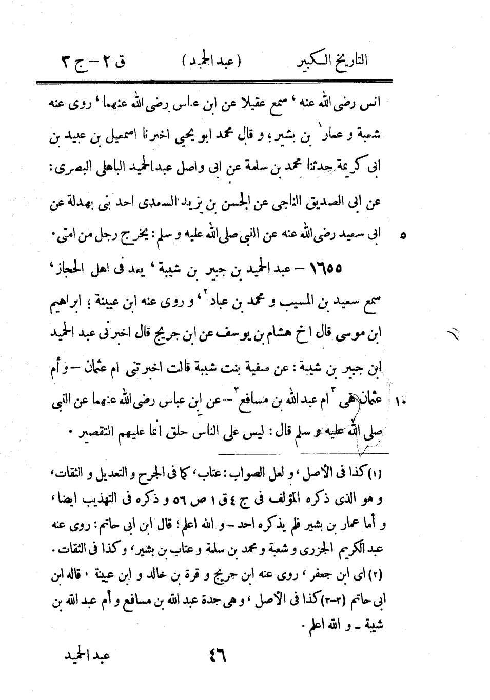 (1) وفى الجرح والتعديل: روى عن امه جنوب بنت نميلة، وفى التهذيب: عن ام جنوب، وهو تصحيف (امه) ، قلت وكان في الاصل: سمع منه جنوب، فلفظ (منه) من سهو الناسخ، والصواب: امه جنوب (2) أي الفريابى ووكيع وأبو النضر هاشم بن القاسم وأبو الوليد وعمروبن خالد وكاتب الليث - قاله ابن ابى حاتم (3) أي ابن المدينى عن يحيى بن سعيد القطان (4) كذا في