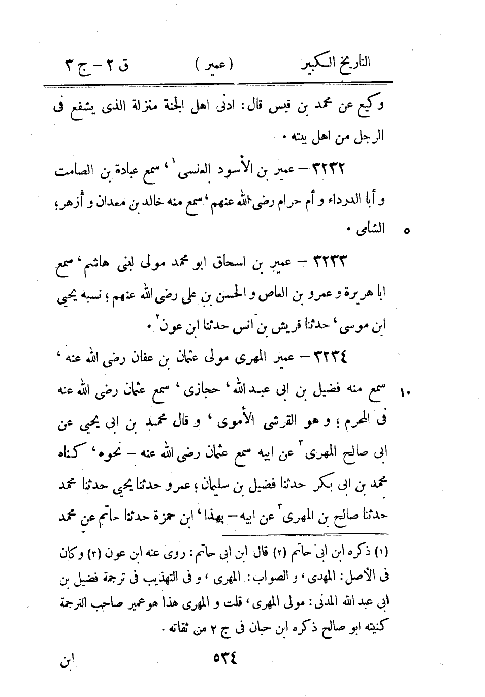 (5) وكان في الاصل: روى، خطأ، والصواب: رأى، قال ابن ابى حاتم: عمير رأى عَمْرو بْن العاص يمسح على الخفِين روى عنه ابنه عتبة بن عمير، قلت وقد مرعتبة بن عمير في بابه قبيل ذلك، وكان في الاصل: عمر - غير معنون بترجمة، خطأ، وقد مر قبل ذلك كرره المؤلف.
