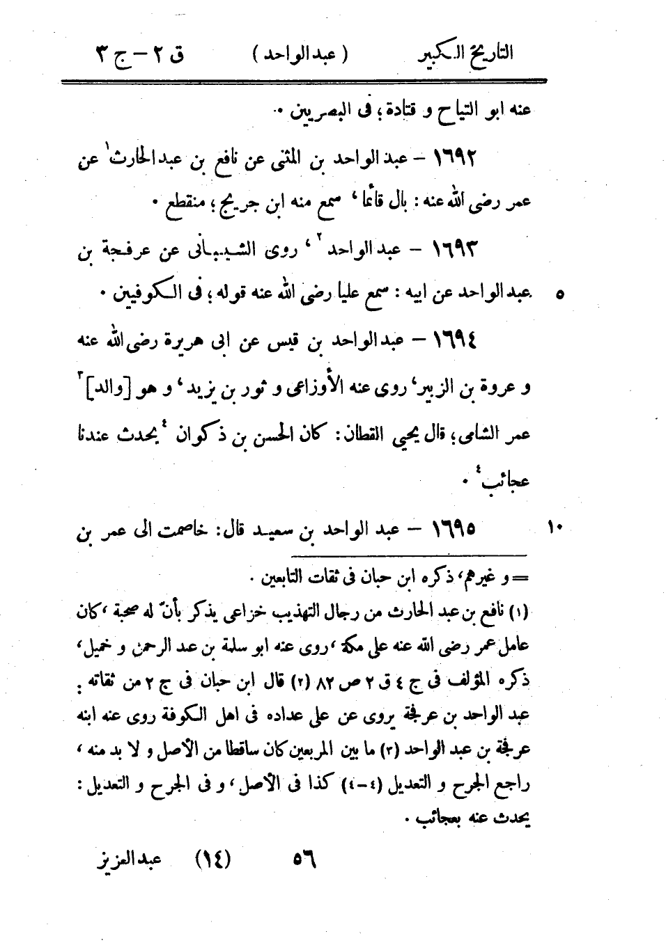 (1) قال ابن ابى حاتم: عبد السلام البجلى روى عن الزبير بن العوام روى عنه اسمعيل بن ابى خالد (2) قال ابن ابى حاتم: عبد السلام بن ابى الجنوب روى عن الزهري روى عنه محمد بن اسحاق وأبو معشر وعيسى بن يونس وقال سألت ابى عنه فقال شيخ مدينى متروك (3) كذا في الاصل وكذا في الثقات: عبد السلام بن ابى مطر - بالميم، وفى الجرح والتعديل: ابن ابى فطر - بالفاء، والله اعلم (4) وكان في الاصل: عن ابى طالب، خطأ، والصواب: عن ابى طالوت، وهو عبد السلام بن شداد صاحب الترجمة.